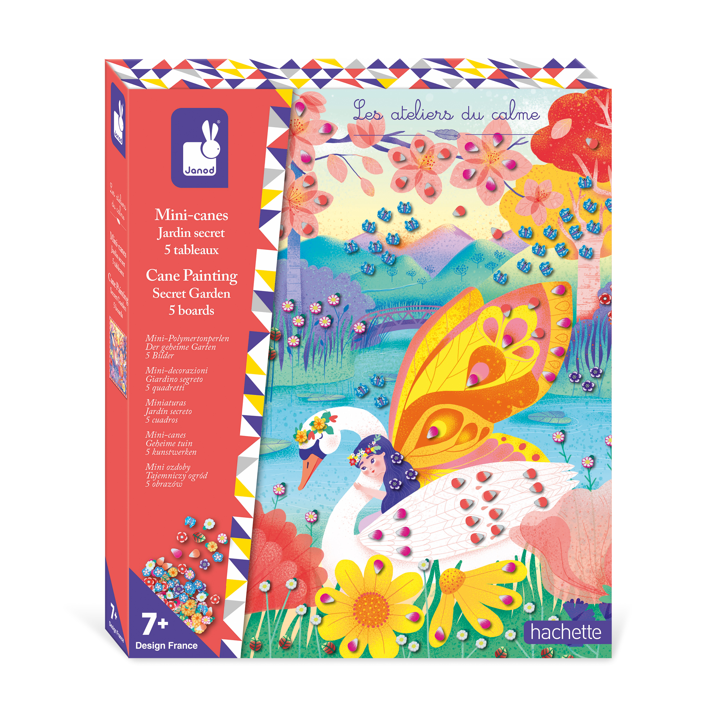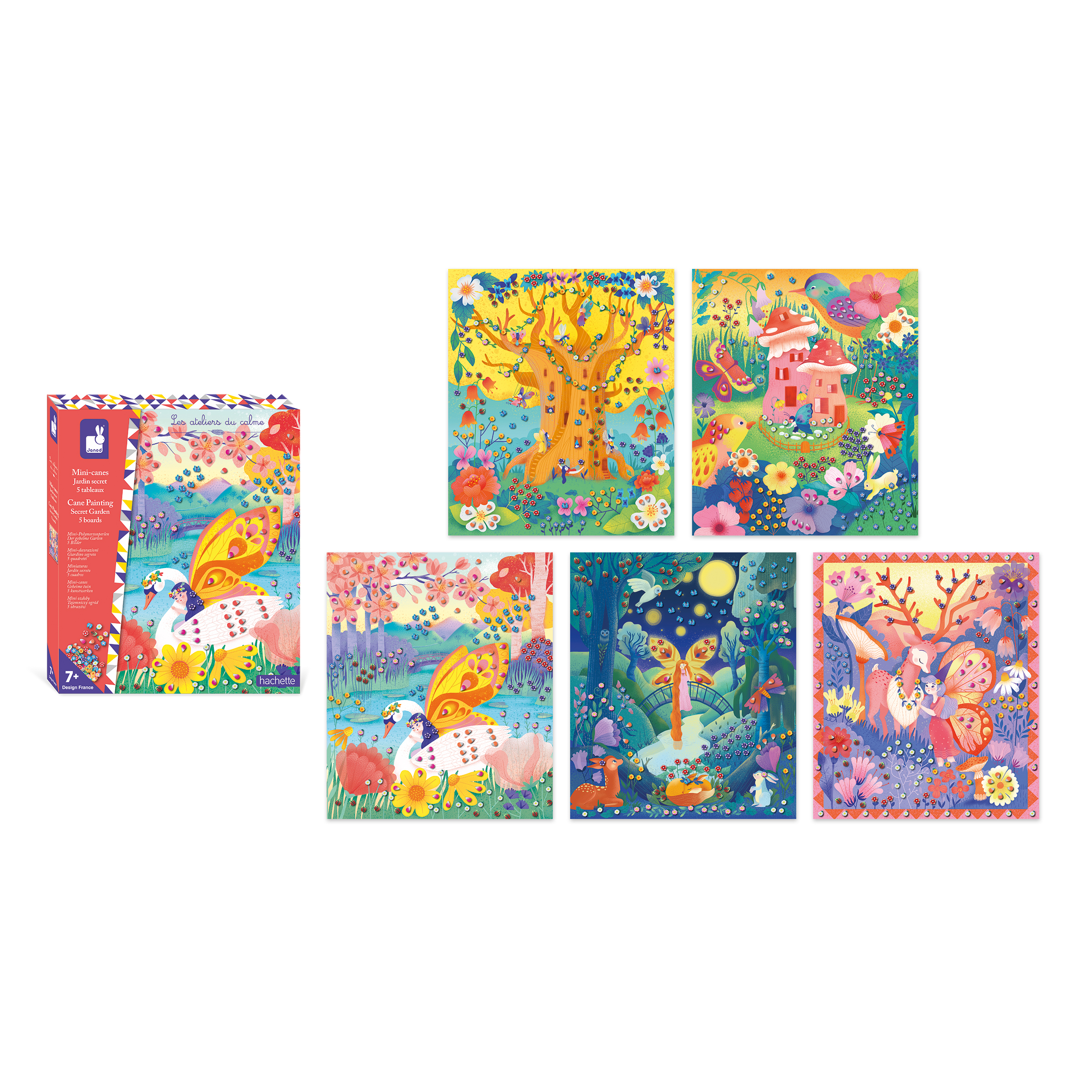 Passer le carrousel d'imagesCe coffret créatif permet de réaliser 5 tableaux à décorer avec des mini-canes sur la thématique jardin secret. Il contient 5 tableaux autocollants, 870 mini- canes en pâte polymère rangées dans 5 petites boîtes rondes en plastique transparent, 1 pince et 1 livret avec les modèles et les instructions. Cette activité permet de développer sa patience et sa créativité et nécessite environ 30 minutes par tableau. Elle est idéale pour les enfants à partir de 7 ans.