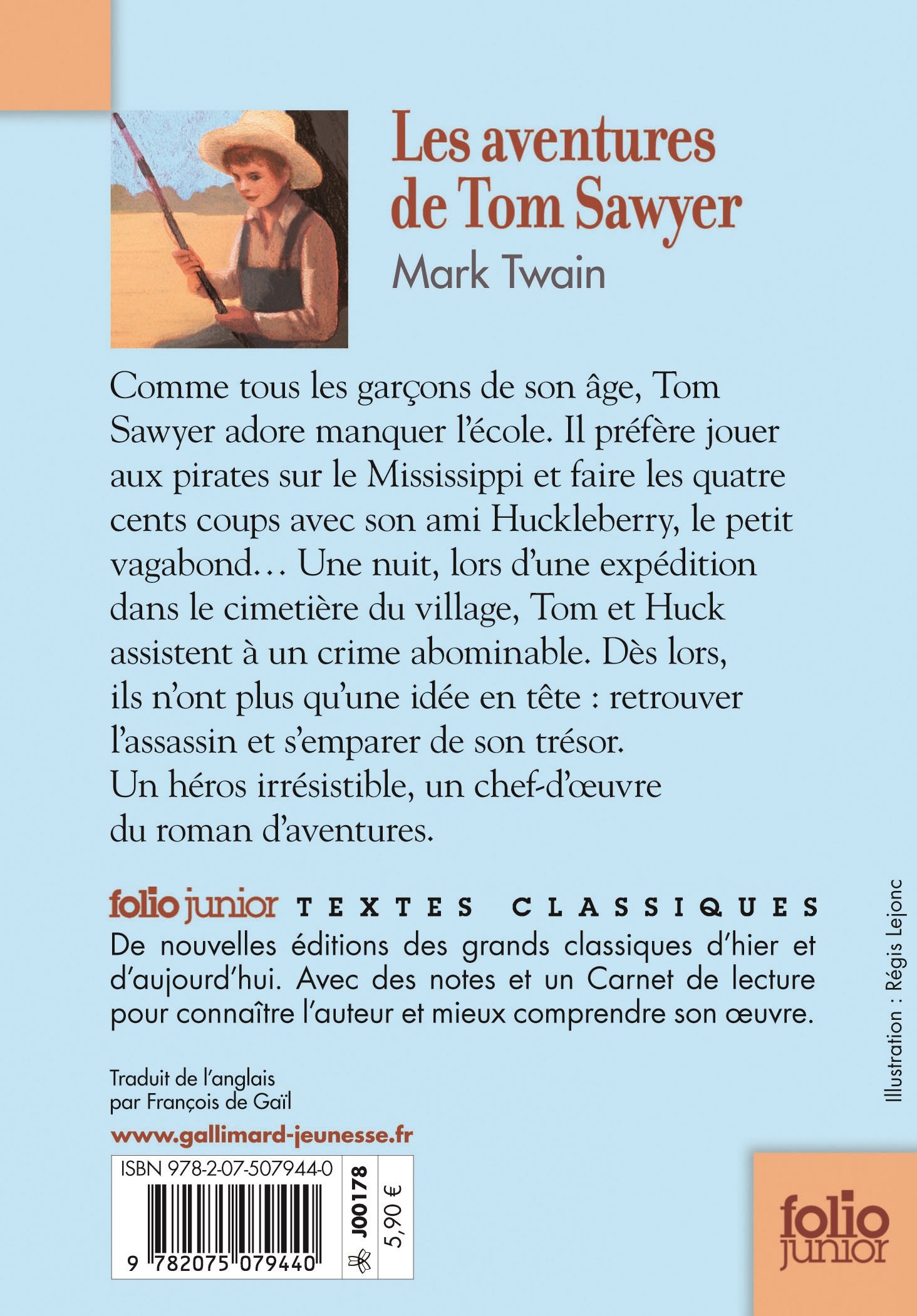 Comme tous les garçons de son âge, Tom Sawyer adore manquer l'école. Il préfère jouer aux pirates sur le Mississippi et faire les quatre cents coups avec son ami Huckleberry, le petit vagabond... Une nuit, lors d'une expédition dans le cimetière du village, Tom et Huck assistent à un crime abominable. Dès lors, ils n'ont plus qu'une idée en tête : retrouver l'assassin et s'emparer de son trésor. Titre recommandé par l'Éducation nationale en classe de 6e