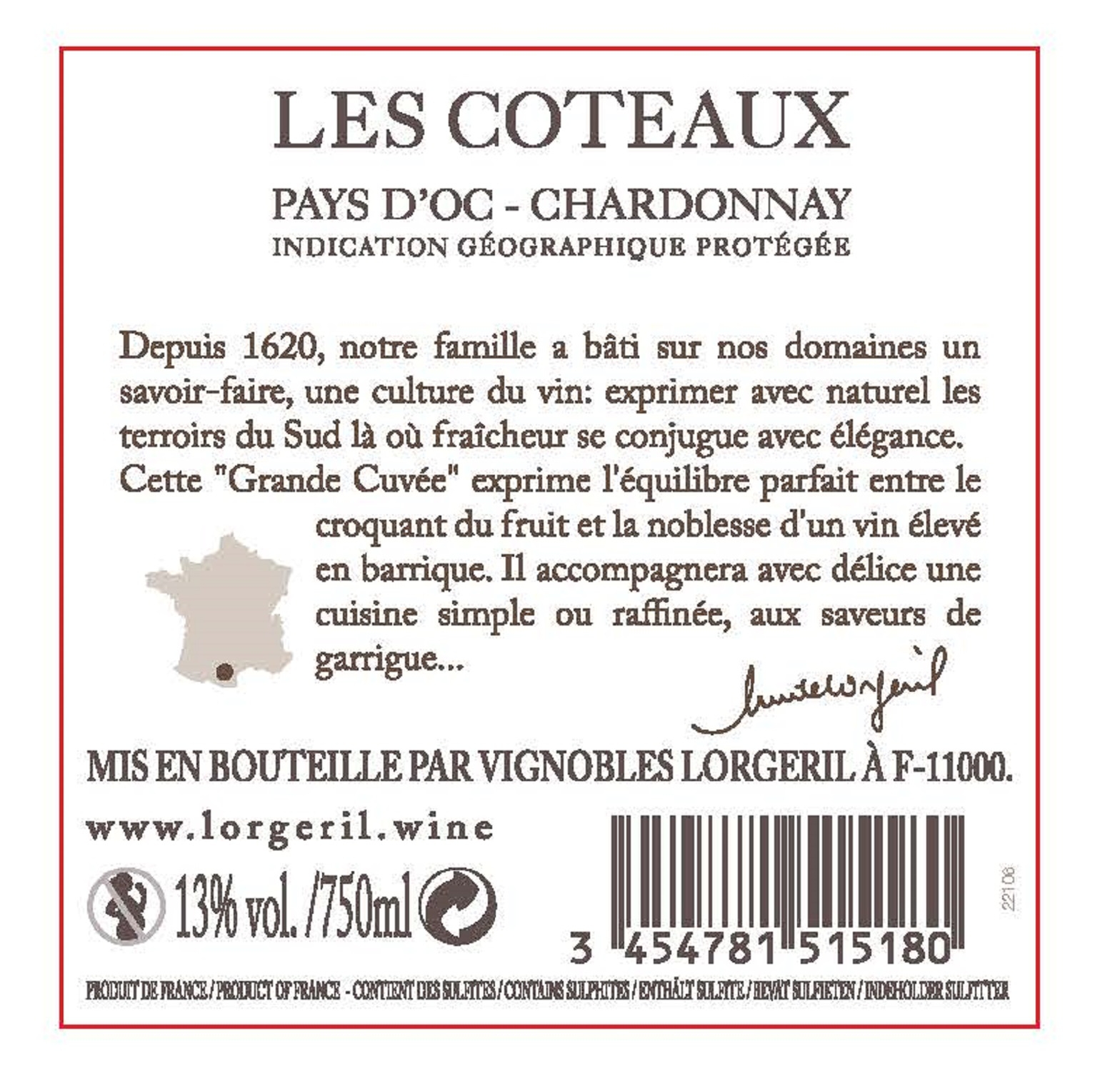 | Libellé | Les Coteaux Grande Cuvée, 2016 - Pays d'Oc IGP - Blanc Sec - 75 cl |