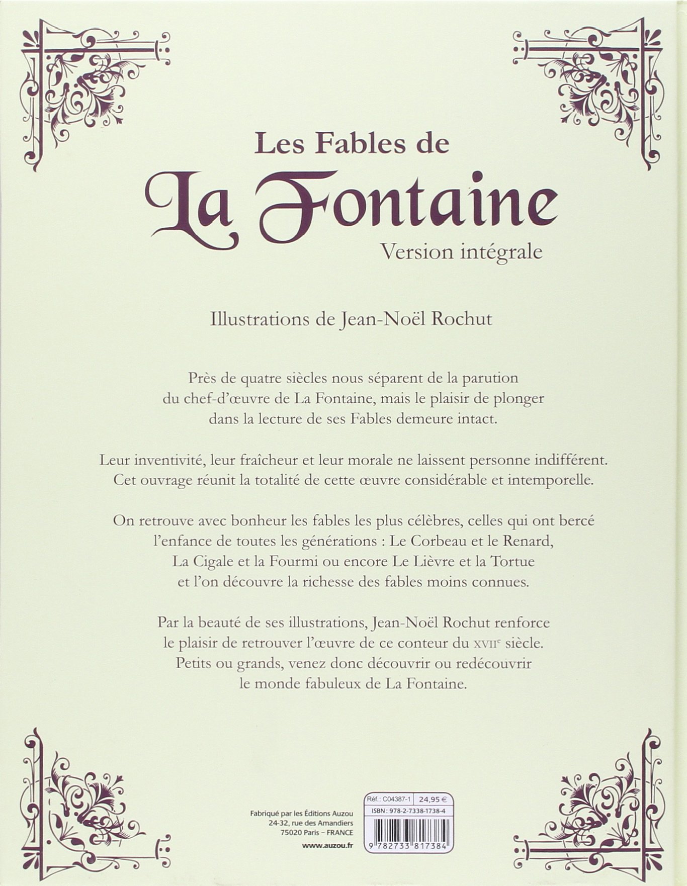 Par la beauté de ses illustrations, Jean-Noël Rochut renforce le plaisir de retrouver l'oeuvre de ce conteur du XVIIe siècle. Petits ou grands, venez donc découvrir ou redécouvrir le monde fabuleux de La Fontaine.