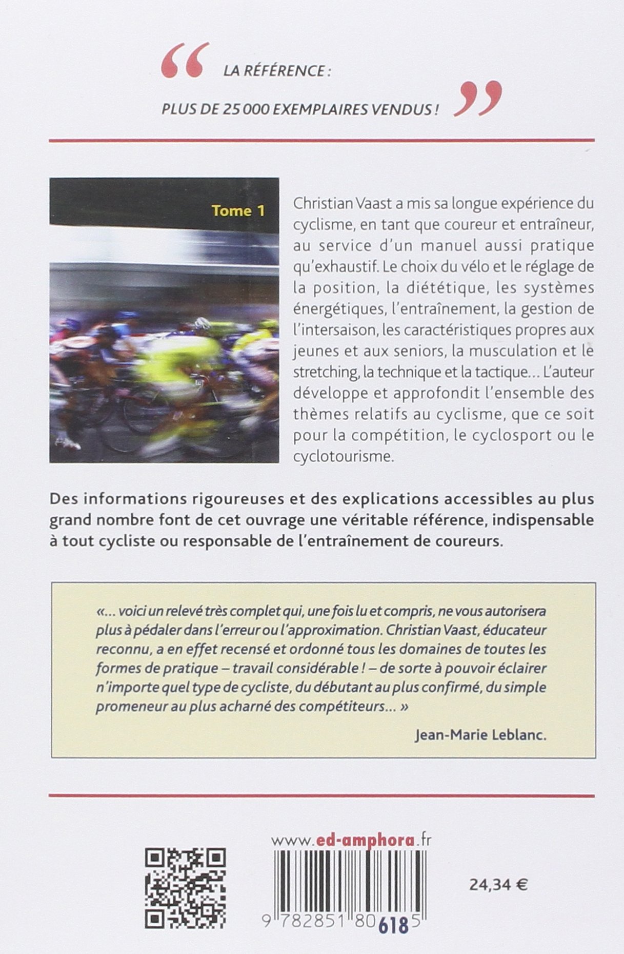 Christian Vaast a mis toute sa longue expérience du cyclisme, en tant que coureur et entraîneur, au service d'un manuel aussi pratique qu'exhaustif. Le choix du vélo et le réglage de la position, la diététique, les systèmes énergétiques, l'entraînement, la gestion de l'intersaison, les caractéristiques propres aux jeunes et aux seniors, la musculation et le stretching, la technique et la tactique...L'auteur développe et approfondit en neuf chapitres l'ensemble des thèmes relatifs au cyclisme, que ce soit pour la compétition, le cyclosport ou le cyclotourisme. Des informations rigoureuses et des explications accessibles au plus grandnombre font de cet ouvrage une véritable référence, indispensable à tout cycliste ou responsable de l'entraînement de coureurs. «... voici un relevé très complet qui, une fois lu et compris ne vous autoriseraplus à pédaler dans l'erreur ou l'approximation. Christian Vaast, éducateurreconnu, a en effet recensé et ordonné tous les domaines de toutes les formesde pratique - travail considérable! - de sorte à pouvoir éclairer n'importe queltype de cycliste, du débutant au plus confirmé, du simple promeneur au plusacharné des compétiteurs...» Jean-Marie Leblanc