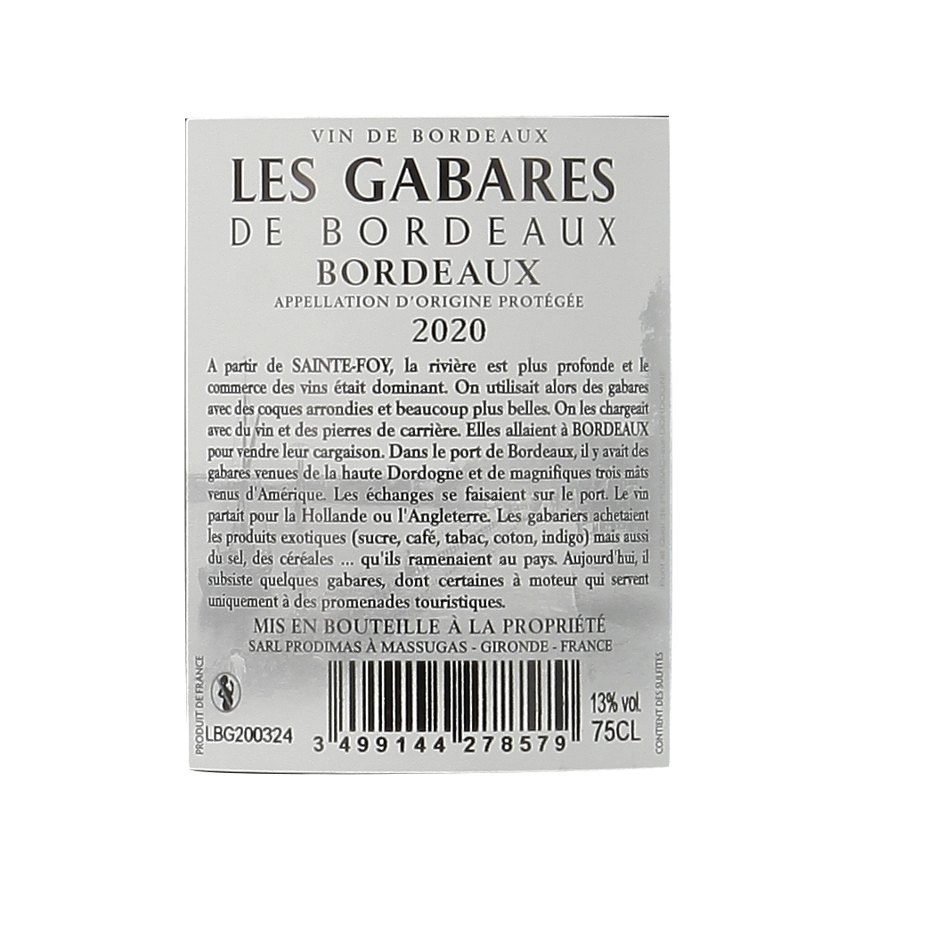 Libellé Les gabares de bordeaux, 2020 - Bordeaux AOP - Rouge - 75 cl