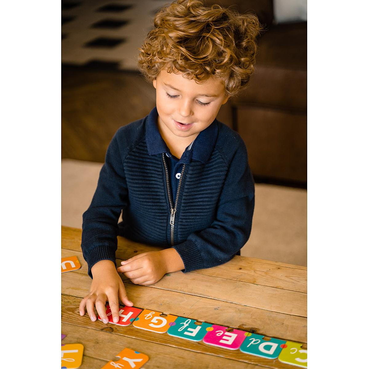 6 jeux progressifs pour découvrir les lettres et apprendre l'alphabet, en jouant seul ou à plusieurs. Des images amusantes aux couleurs très gaies. L'enfant associe d'abord la lettre à l'image et au mot : A comme Avion, B comme Baleine Il joue ensuite à reconstituer l'alphabet.