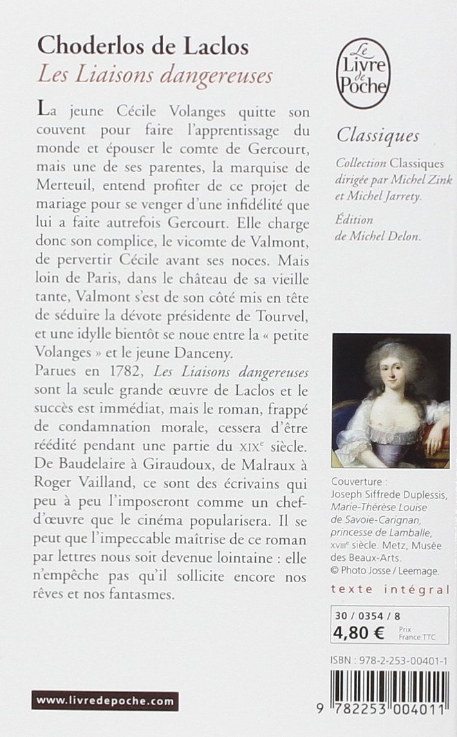 Rien ne semblait destiner Laclos à la littérature, et Les Liaisons dangereuses, qu’il fait paraître en 1782, sont la seule grande œuvre qu’ait achevée le capitaine et futur général d’artillerie. Le succès est immédiat, mais le roman, frappé de condamnation morale, cessera d’être réédité pendant une partie du xixe siècle. De Baudelaire à Giraudoux, de Malraux à Roger Vailland, ce sont des écrivains qui peu à peu l’imposent comme un chef-d’œuvre que le cinéma va populariser. Il se peut que l’impeccable maîtrise de ce roman par lettres nous soit devenue lointaine : elle n’empêche pas qu’il sollicite encore nos rêves et nos fantasmes.