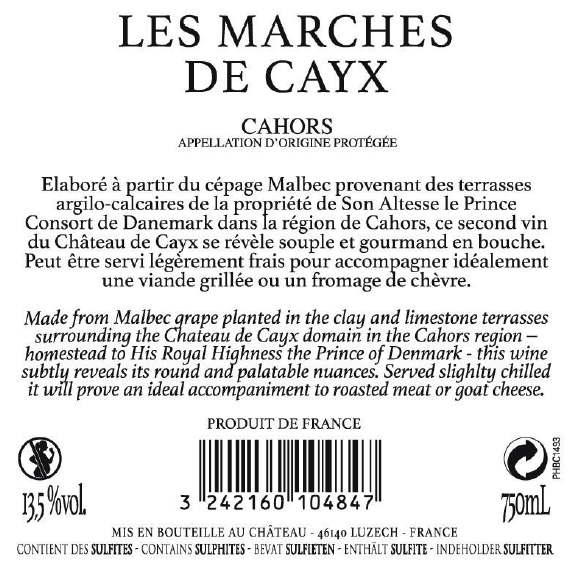 | Libellé | Les Marches de Cayx, 2018 - Cahors AOP - Rouge - 75 cl |