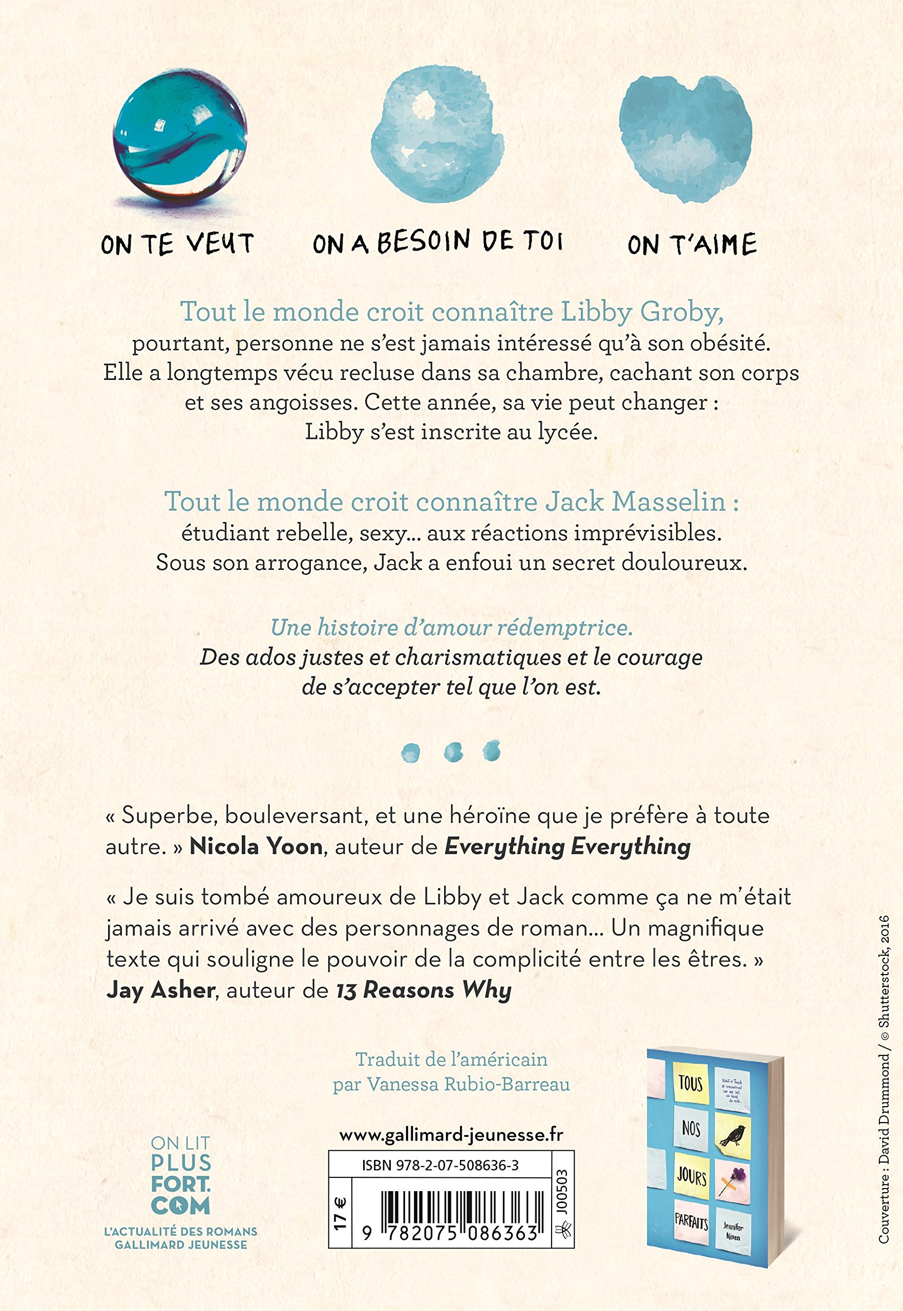 Tout le monde croit connaîte Libby Groby, pourtant, personne ne s'est jamais intéressé qu'à son obésité. Elle a longtemps vécu recluse dans sa chambre, cachant son corps et ses angoisses. Cette année, sa vie peut changer : Libby s'est inscrite au lycée. Tout le monde croit connaître Jack Masselin : étudiant rebelle, sexy... aux réactions imprévisibles. Sous son arrogance, Jack a enfoui un secret douloureux.