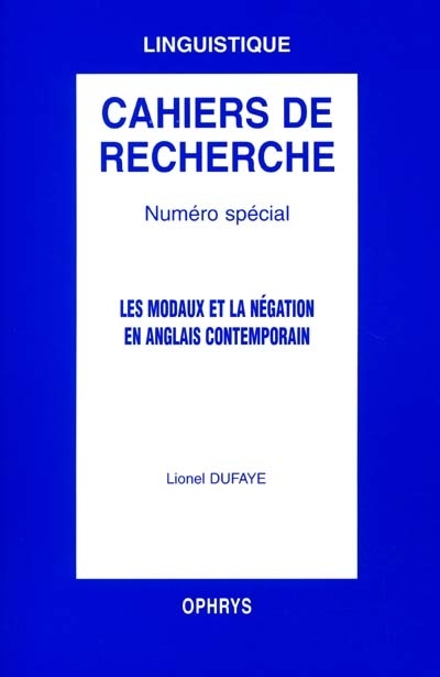 | Titre de l'œuvre | Les modaux et la négation en anglais contemporain |