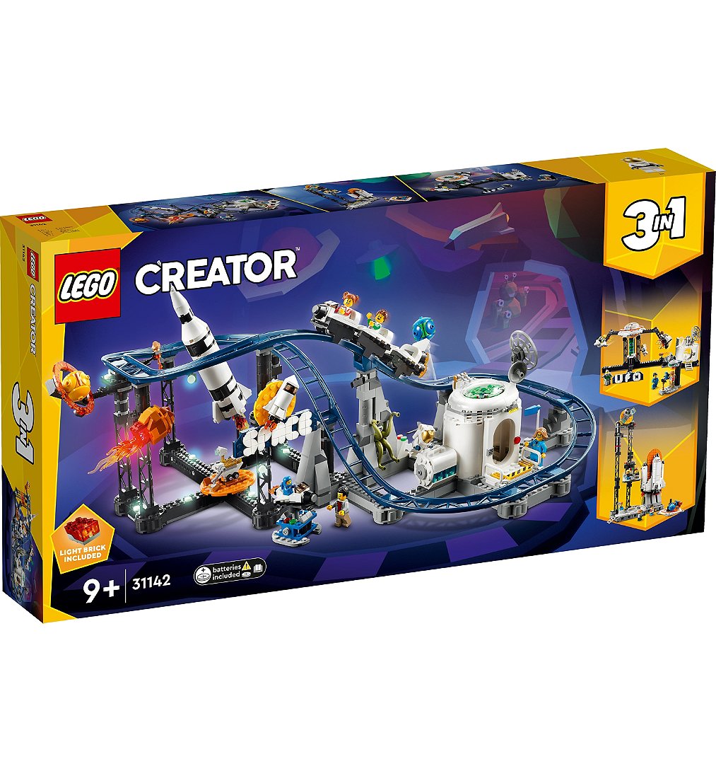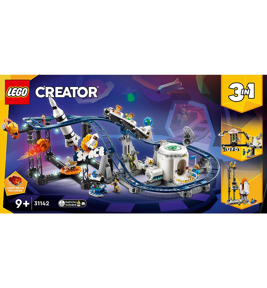 Le set Les Montagnes Russes de l’Espace LEGO Creator (31142) permet aux fans de l'espace de 9 ans et plus de faire une sortie méga-excitante dans un parc d'attractions. Les enfants peuvent se réjouir de faire des tours passionnants avec les montagnes russes spatiales LEGO Creator et transformer ensuite le jouet 3-en-1 en tour de chute libre spatiale ou en manège spatial.