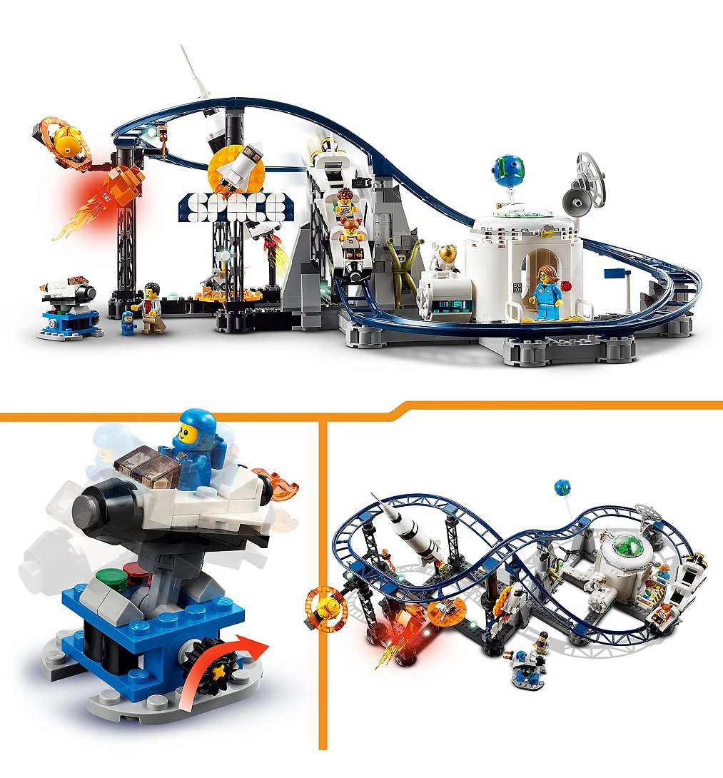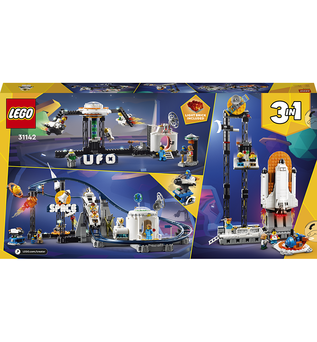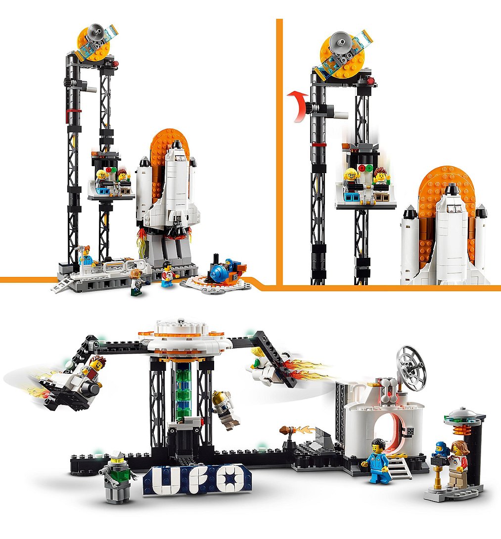 | Plus produit | Avec ce set LEGO® Creator 3-en-1, les enfants vont adorer dévaler les montagnes russes de lespace puis les transformer en tour de chute libre ou en manège de lespace. |