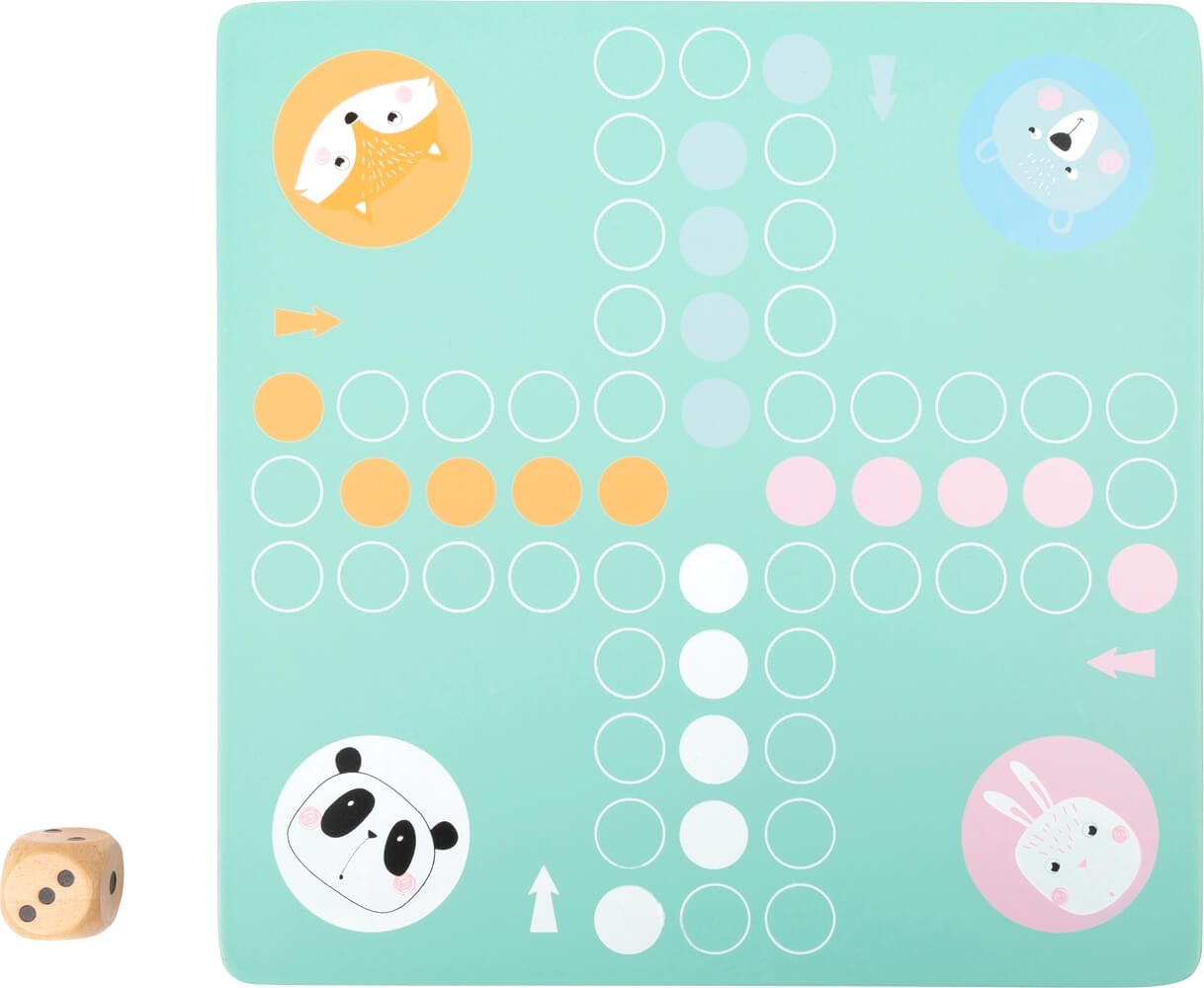 Jeu classique en bois, les petits chevaux, aux couleurs pastel sur le thème des Animaux.