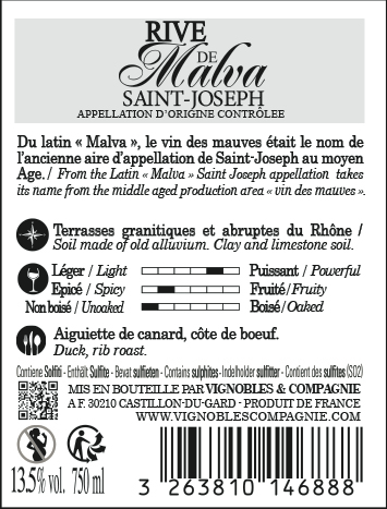 | Libellé | Les Rives de Malva, 2021 - Saint-Joseph AOP - Rouge - 75 cl |