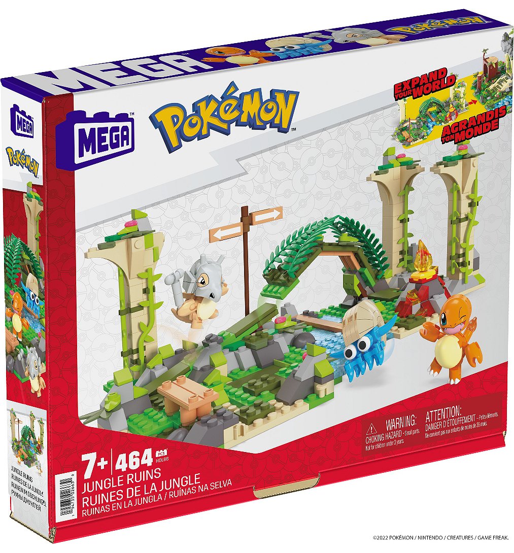 | Plus produit | Contient les figurines dOsselait, de Salamèche et dAmonita et un environnement à construire représentant des ruines ,Peut être combiné à dautres coffrets Adventure Builder (vendus séparément) afin de créer un vaste univers Pokémon ,Les 464 briques et pièces de ce coffret sont compatibles avec tous les coffrets de construction MEGA Pokémon et dautres grandes marques ,Idéal à partir de 7 ans, ce jouet à assembler combine construction et jeu pour développer la créativité et la capacité de résolution des problèmes ,Sous licence officielle de The Pokémon Company International |