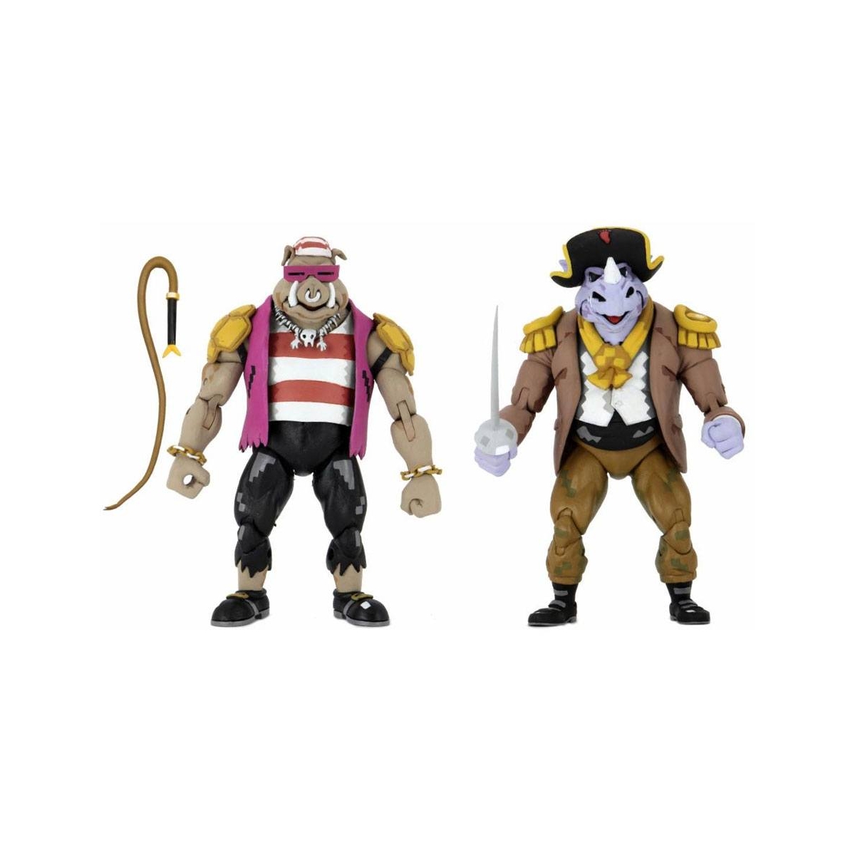 Pack de 2 figurines Les Tortues ninja : Turtles in Time, modèles Pirate Rocksteady & Bebop 18 cm.