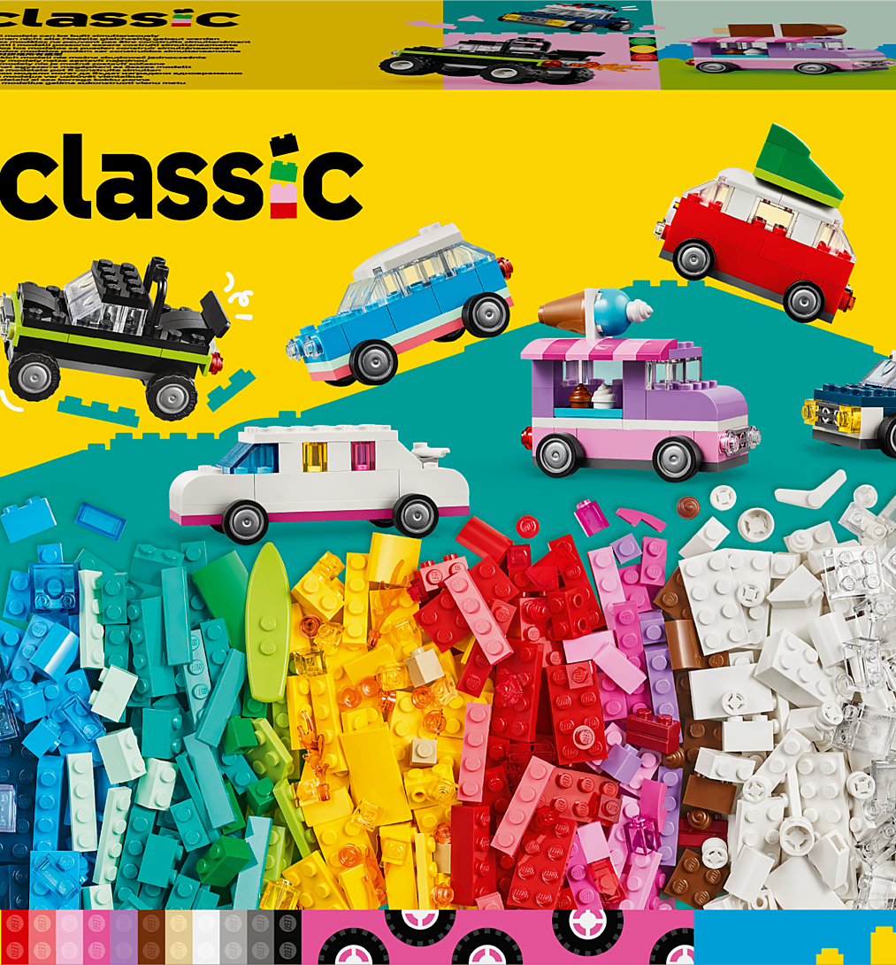 Offrez aux enfants âgés de 5 ans et plus qui aiment les véhicules l'ensemble LEGO Classic Les Véhicules Créatifs (11036) pour construire et jouer. Ce kit de construction de voitures colorées contient un mélange de briques de construction et de pièces, ainsi que des instructions simples pour créer un ensemble multicolore de véhicules reconstruisibles à l'infini. Avec 900 briques de construction, des pièces spéciales et 52 roues, ainsi que des instructions faciles à suivre, les enfants peuvent construire une voiture de police, une camionnette de crème glacée, un VTT, une chargeuse frontale, un camion, une voiture de tourisme, un tout-terrain et une limousine. Ensuite, en utilisant des idées pour différents designs, des détails cool et des décorations colorées, les enfants peuvent reconstruire leurs véhicules de nouvelles manières amusantes. À mesure que leurs compétences en construction créative se développent, ils peuvent essayer leurs propres designs. L'inspiration est incluse, avec 10 idées imaginatives pour stimuler le plaisir de la construction libre. Les instructions sont également disponibles sur l'application LEGO Builder, qui permet aux enfants de zoomer, de faire pivoter les modèles et de suivre les progrès. Les jouets LEGO Classic regorgent d'idées et d'inspiration et permettent aux parents de partager le plaisir de la construction et les étapes du développement de leurs enfants.