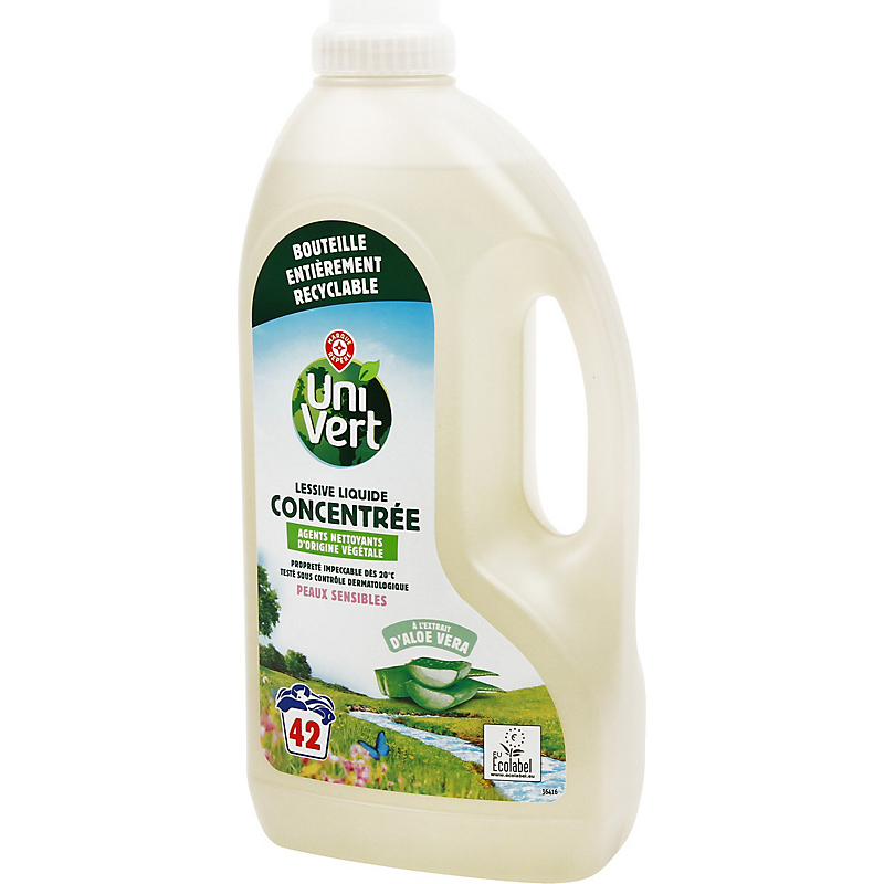 Lessive liquide concentrée peaux sensibles à l'extrait d'Aloé Véra 42 lavages - 1,5 l - UNI VERT