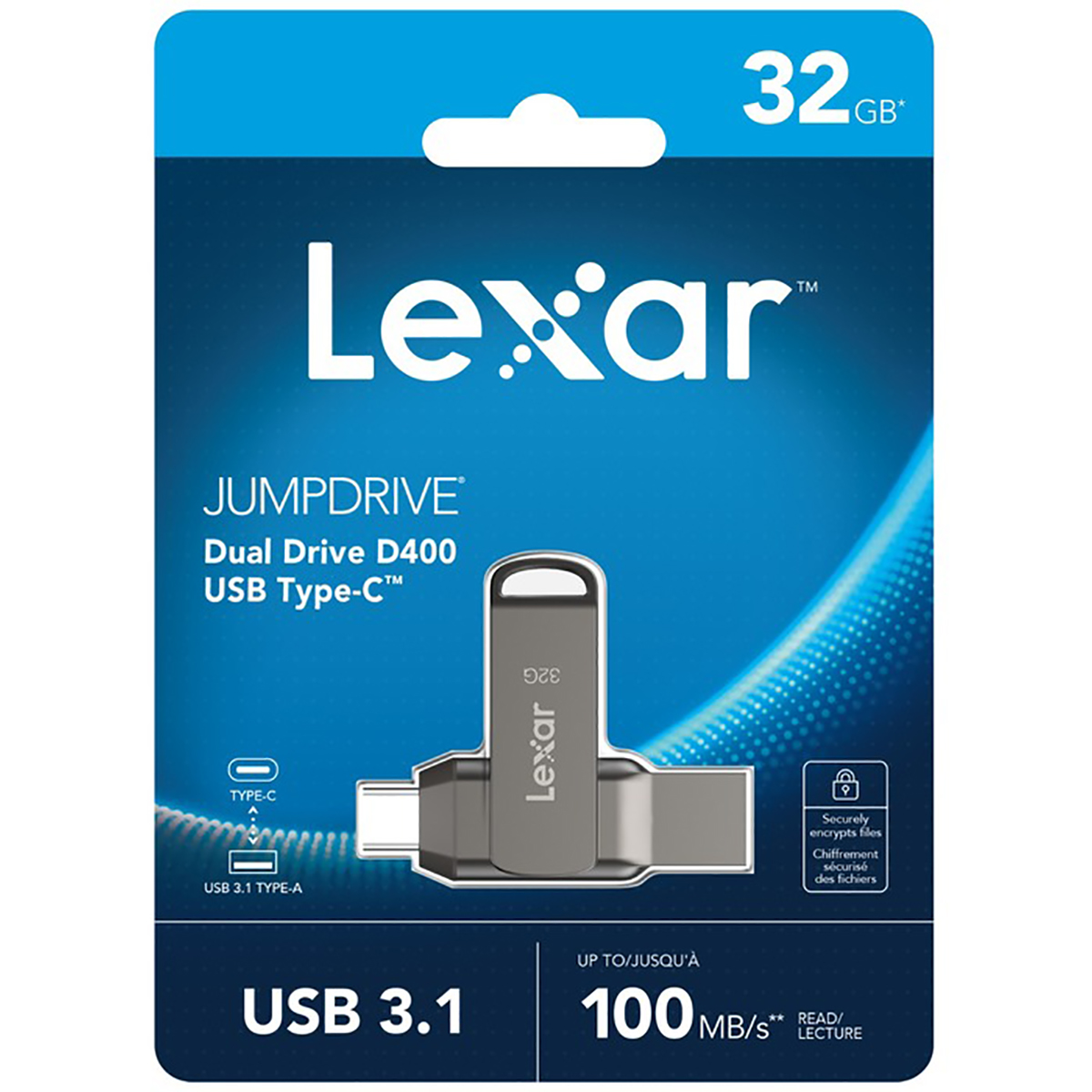 Lexar Clé USB 32 Go Double Connecteur USB-A / USB-C D400 Ultra Rapide Gris