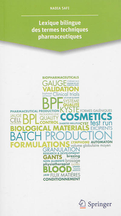 Ce lexique bilingue français-anglais, comprenant plus de 14 000 entrées, est un outil indispensable aux industriels et aux étudiants qui évoluent dans l'industrie pharmaceutique ainsi qu'aux traducteurs.