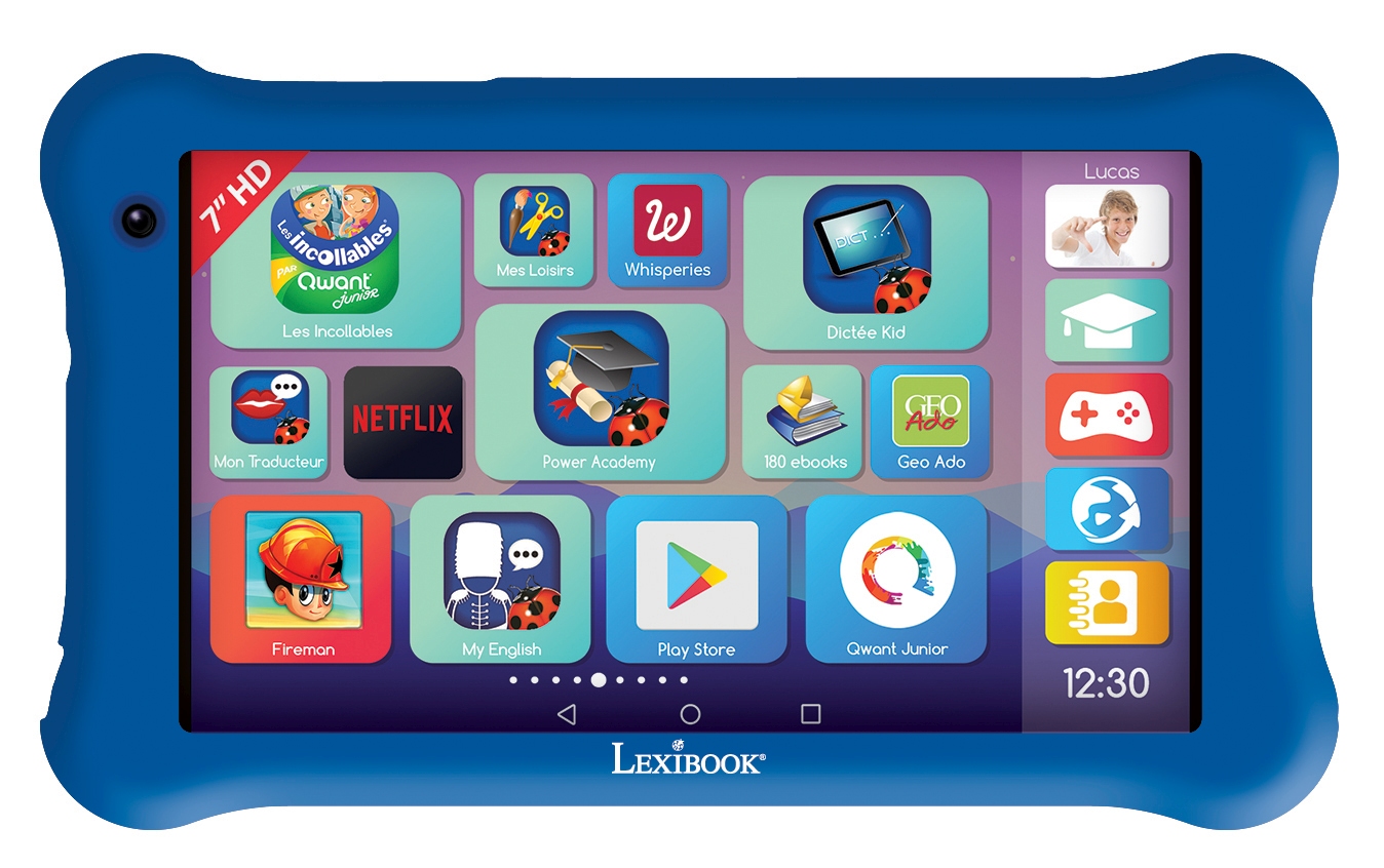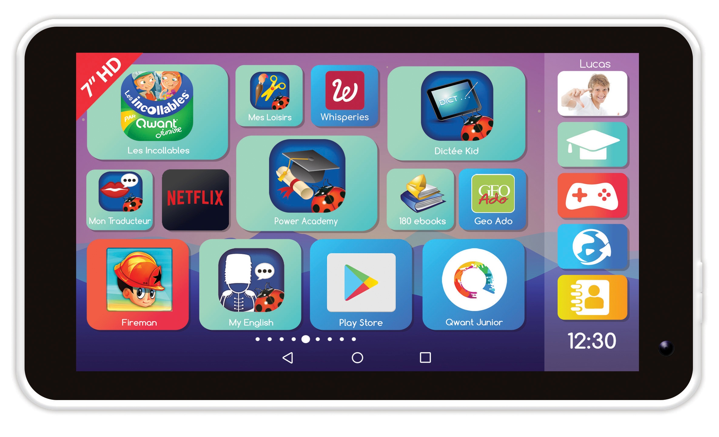 Une super tablette Android avec du contenu éducatif, un écran de 7'', une interface personnalisée et une pochette de protection. * CONÇU POUR LES ENFANTS ET LES ADOLESCENTS : interface conviviale avec profils personnalisables et contrôle parental. * CONTRÔLE PARENTAL 3 EN 1 : Gestion du temps, gestion des applications, navigateur Internet Qwant Junior Safe. * Excellentes spécifications : écran HD de 7 pouces, processeur octa-core, mémoire RAM de 4 Go, Bluetooth, double caméra. * CONTENU AXÉ SUR LA FAMILLE : Contenu préchargé amusant et éducatif sélectionné par nos équipes éducatives ! * Contenu éducatif : Power Academy, My Teacher 7-11 & 12+, My Dictation, My Translator avec 15 langues ! * Contenu ludique : les jeux les plus passionnants comme Fireman et bien d'autres, My Hobbies, 180 e-books, éditeur de photos... * ACCÉDEZ À DES MILLIERS D'APPLICATIONS, DE JEUX, DE FILMS ET BIEN PLUS ENCORE : Inclut la boutique Google Play™ pour un choix infini d'applications et de jeux Android™ roid™ !