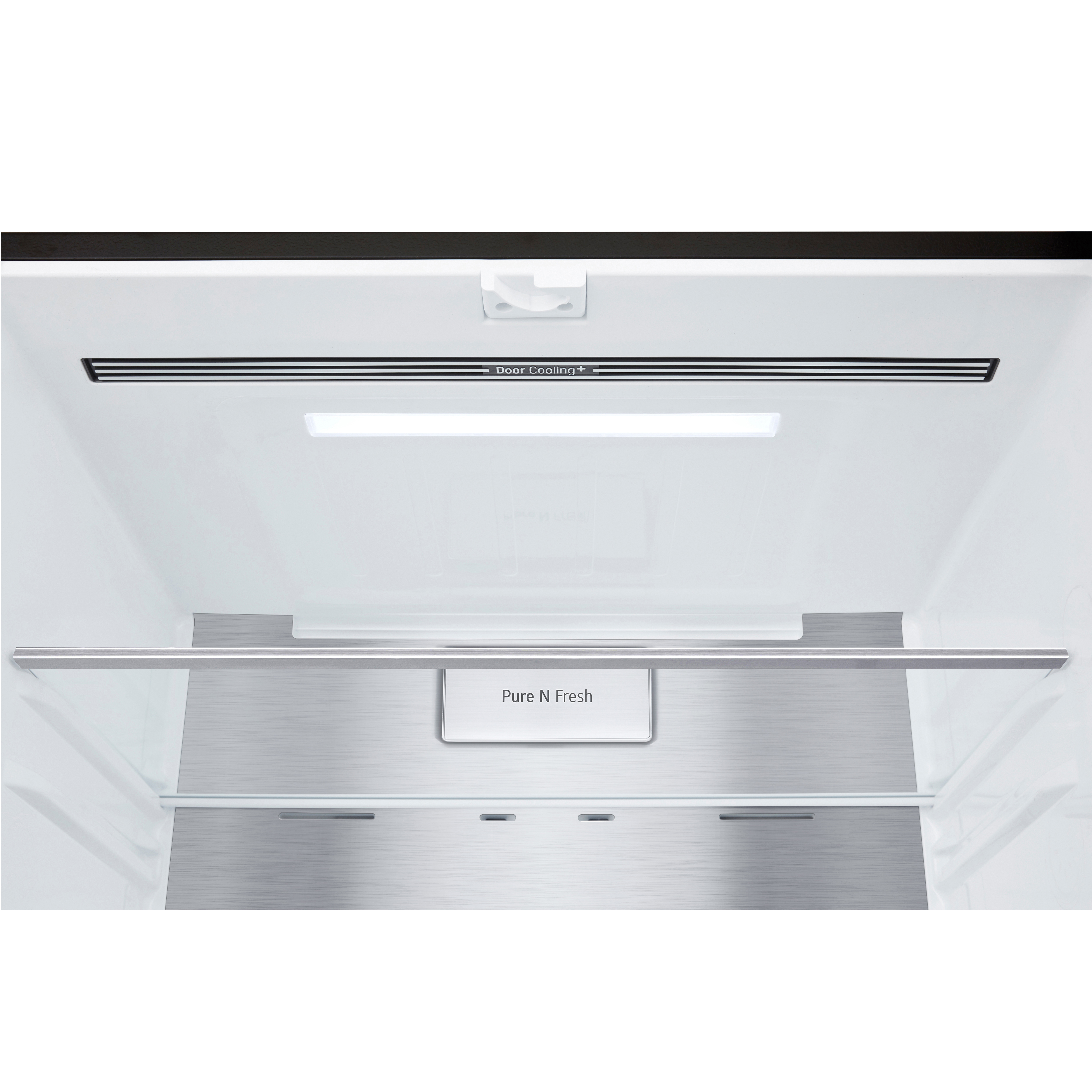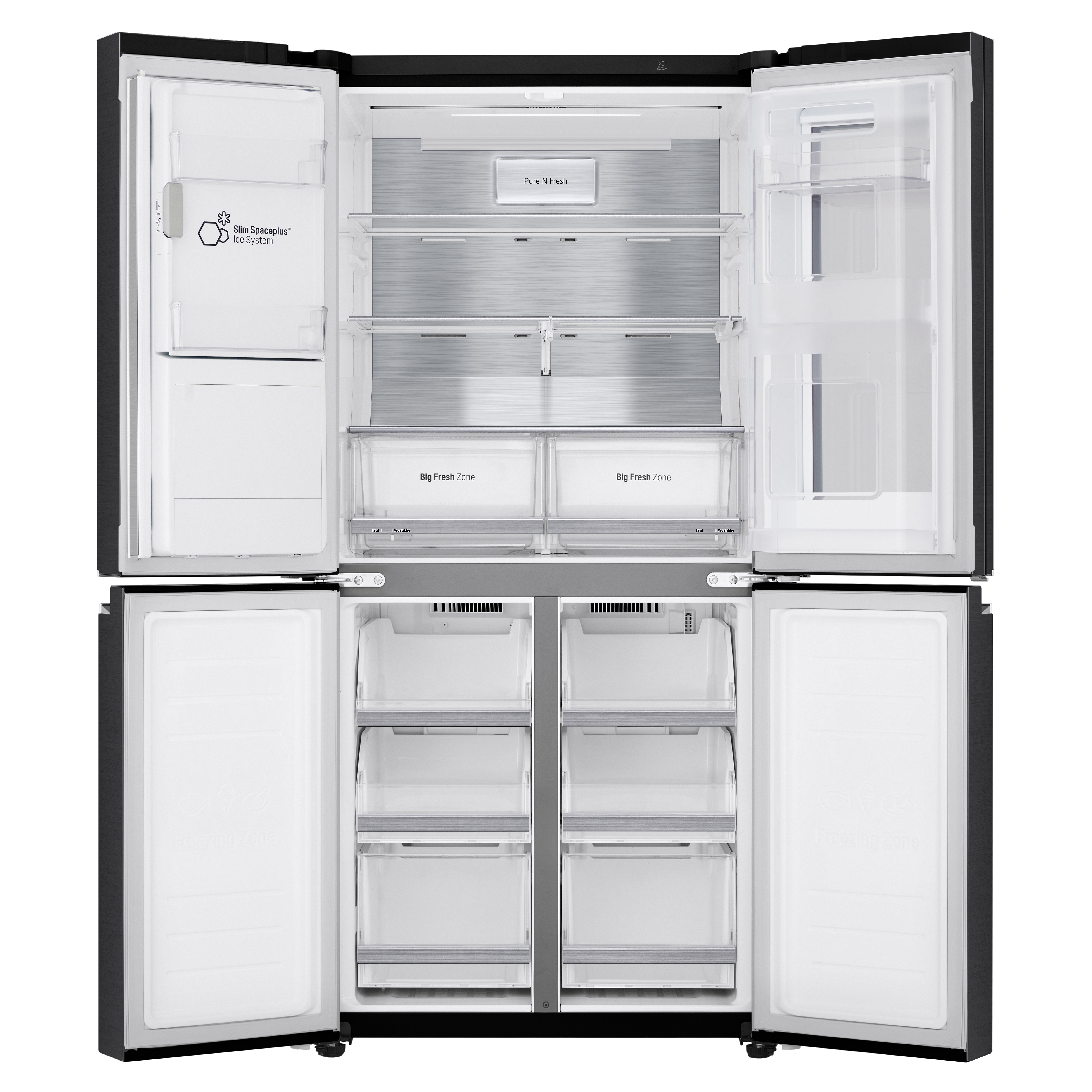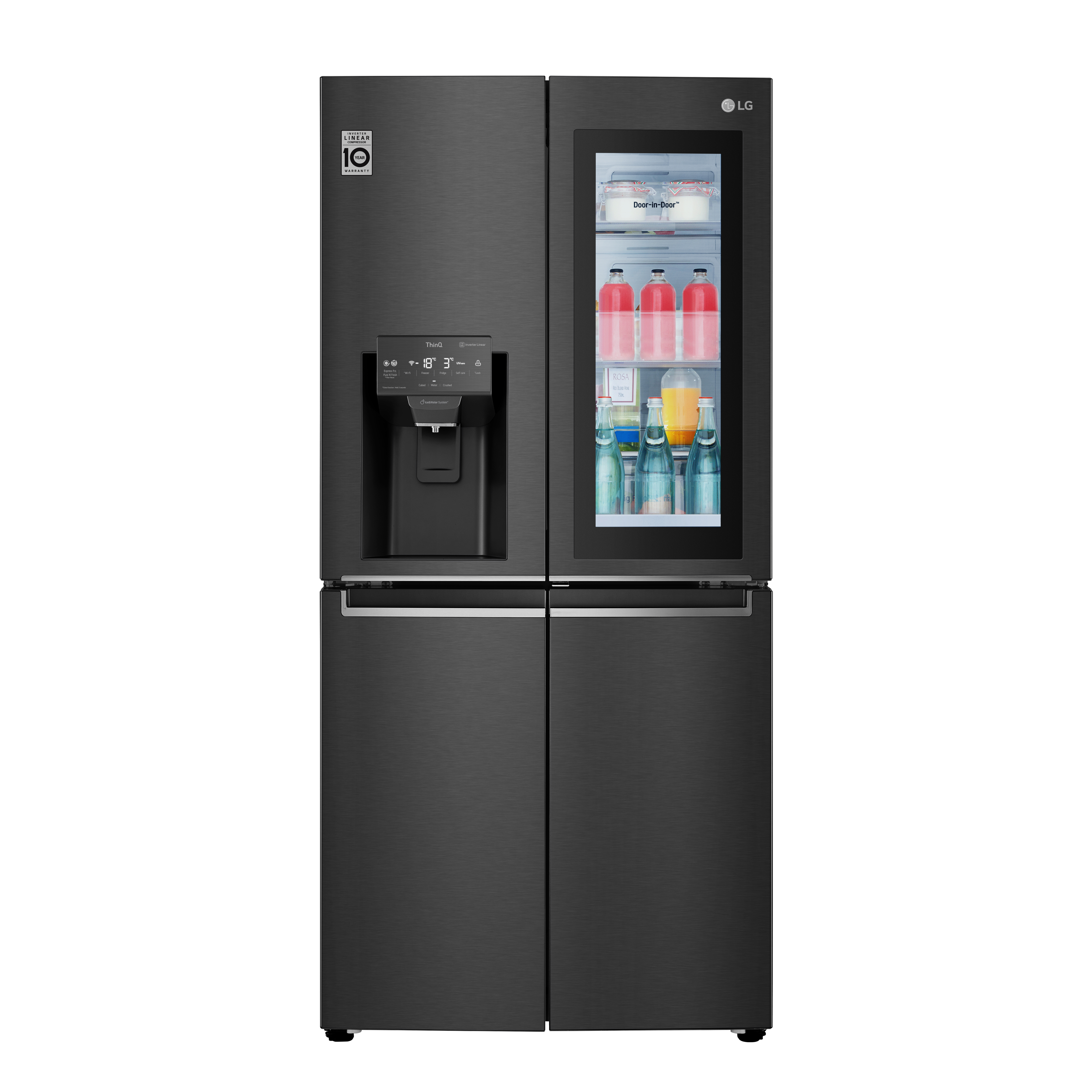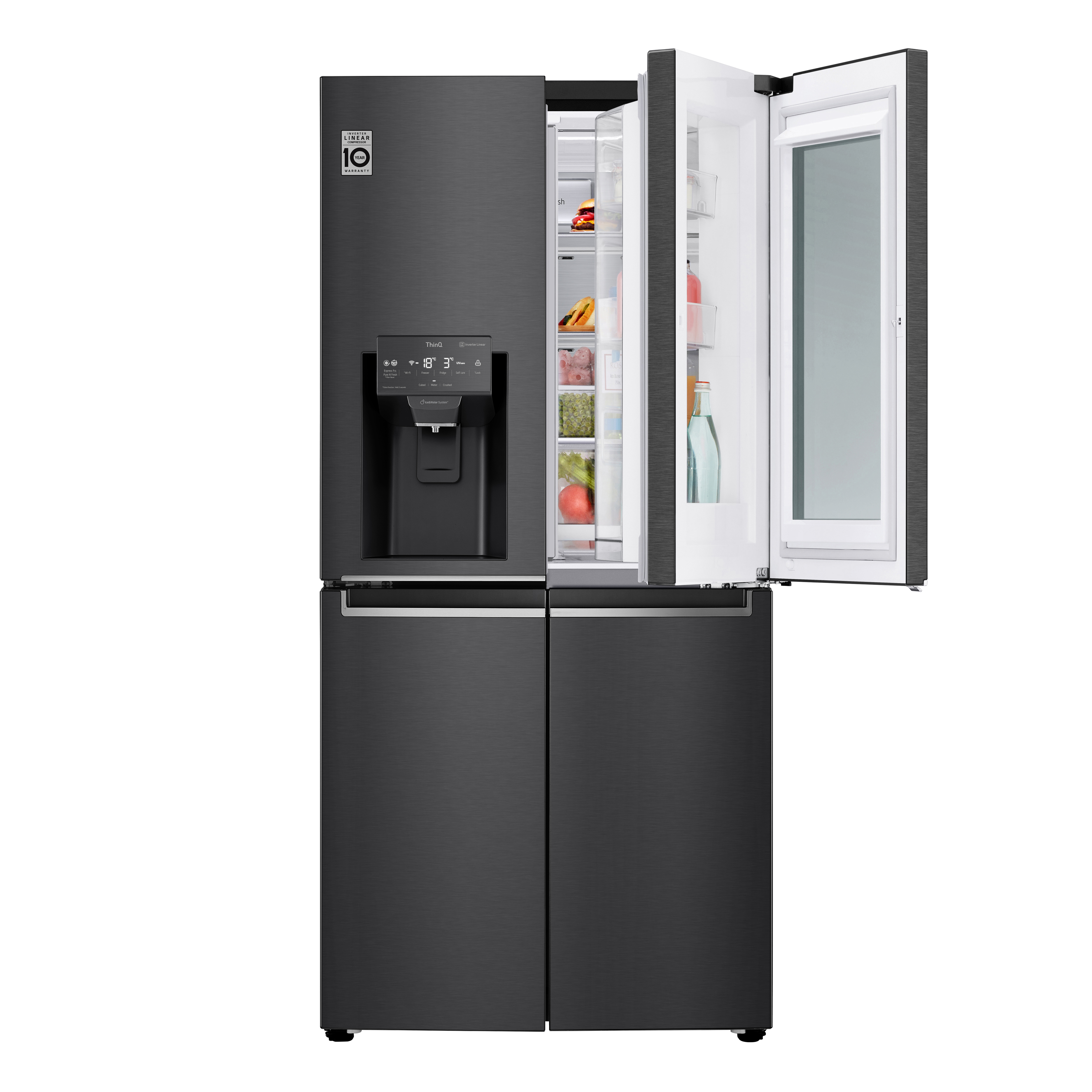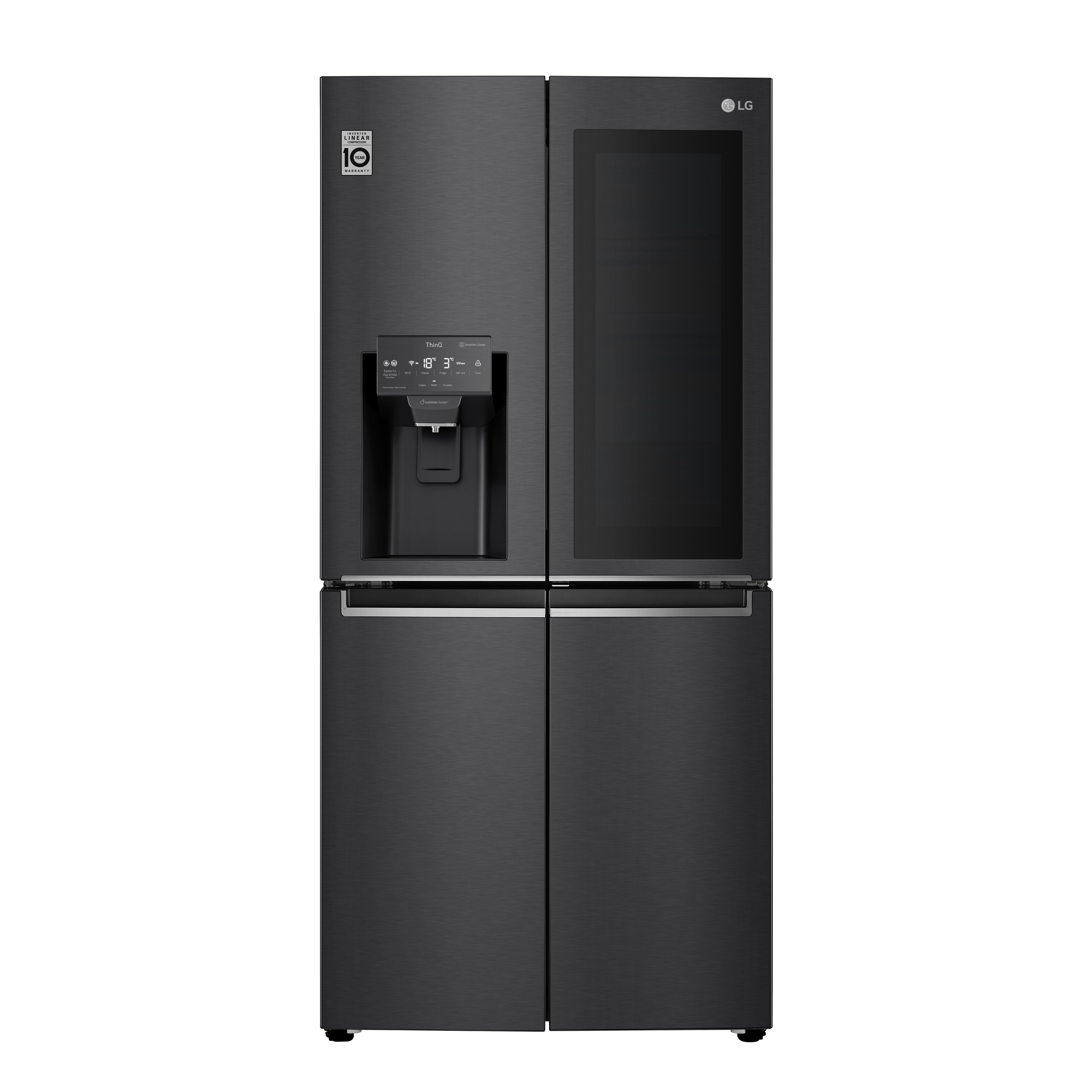 LG InstaView GMX844MC6F. Placement de l'appareil: Pose libre, Conception du produit: Américain, Couleur du produit: Noir. Capacité nette totale: 506 L, Classe climatique: T, Classe d'émission sonore: C. Capacité nette du réfrigérateur: 288 L, Plage de températures de réfrigérateur: 1 - 7 °C, Type de lampe: LED. Capacité net du congélateur: 220 L, Emplacement du compartiment à glace: Bas-placé, Capacité de congélation: 6,5 kg/24h. Longueur du câble: 1,9 m