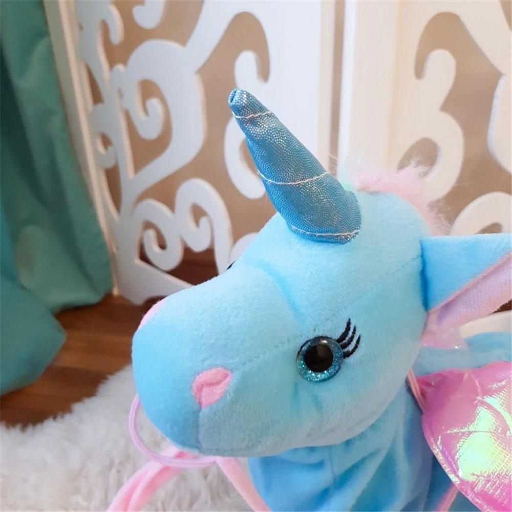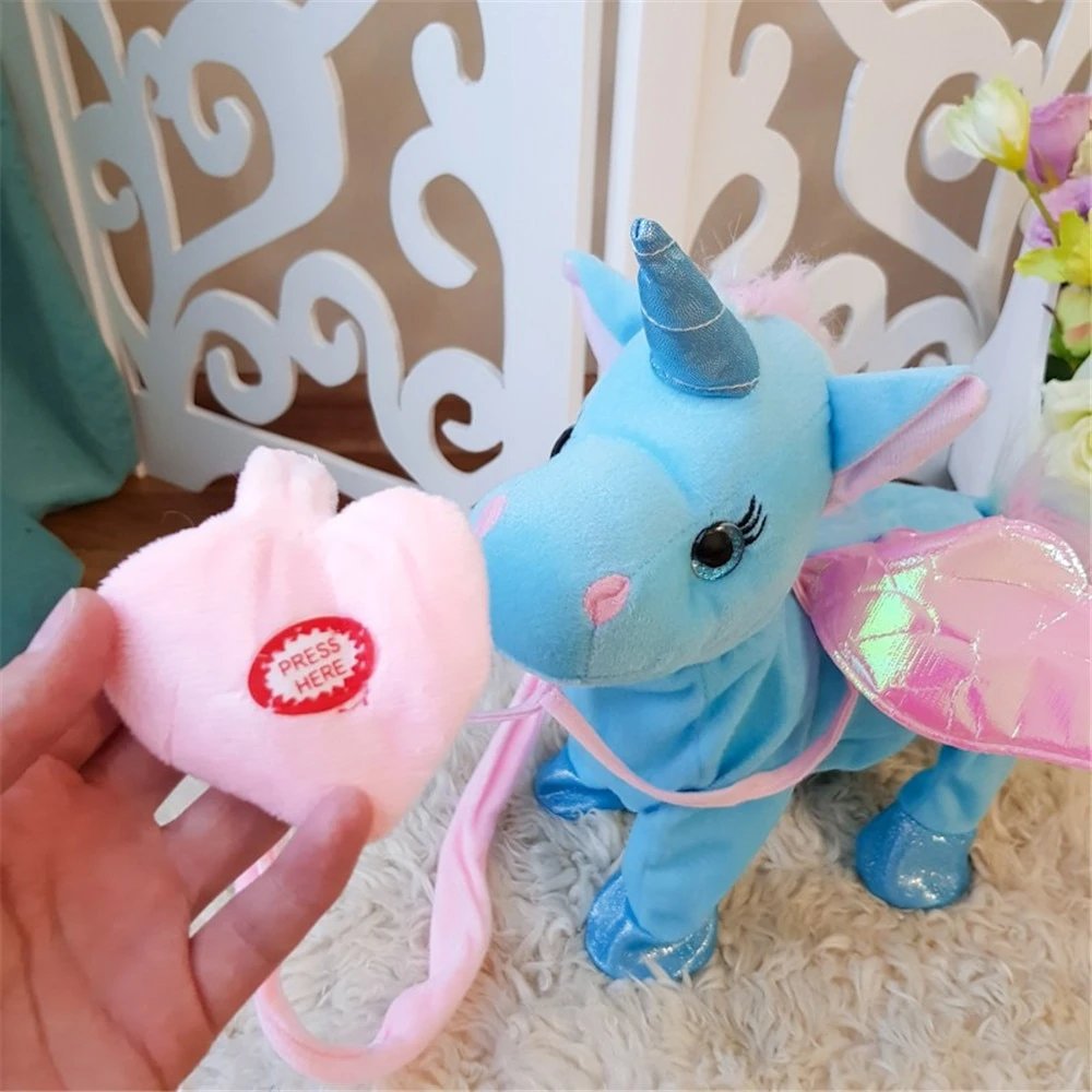 Cette licorne Peluche est tout ce qui rend les enfants heureux, que ce soit des filles ou des gar�ons. La licorne est tr�s captivante. Cela fonctionne lors du chargement du bouton. L'enfant peut la passer dans toute la maison. Cette licorne est un animal de compagnie en forme de jouet. Meilleure qualit� La peluche est tr�s douce au toucher. Il est en fibre de polyester et rempli de coton PP. C'est s�r pour les enfants. La paire d'ailes r�fl�chissantes rend le jouet unique et attrayant. Savoir chanter et danser Unicorn peut chanter de belles chansons, marcher et danser avec les enfants. Facile � utiliser Appuyez sur le bouton en forme de c�ur pour activer la danse et marcher. Le m�canisme est cach� dans la poitrine (avec velcro). Un bon animal de compagnie La licorne est un bon compagnon pour les enfants. Apprenez-leur � prendre soin des animaux. Les enfants adorent marcher avec le jouet Peluche toujours avec eux. Le jouet fonctionne avec des batteries (non incluses)..