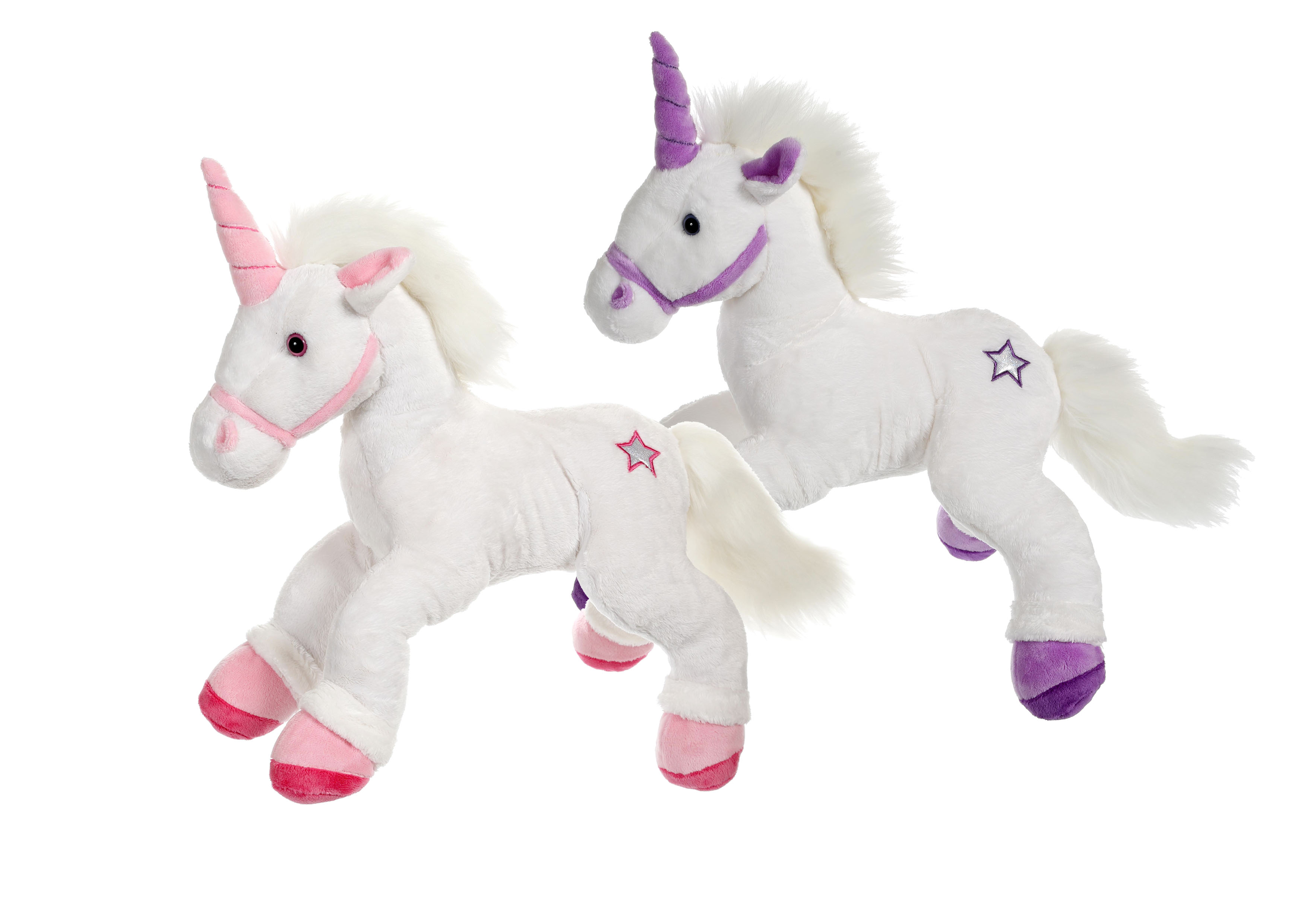Adorable licorne en peluche de 42 cm, girly et extra douce à la jolie corne et aux sabots colorés.