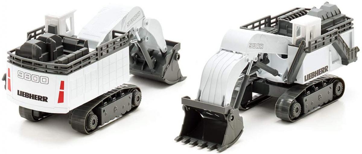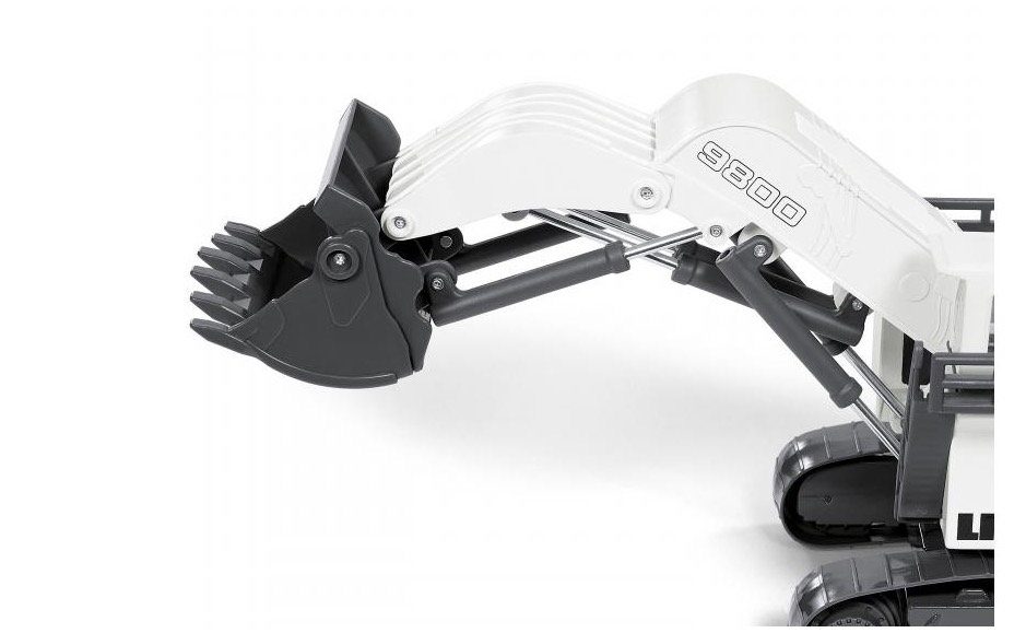 Le géant parmi les pelles sur chenilles sur le chantier et dans la mine à ciel ouvert est un véritable colosse même à l’échelle HO. La série R9800 actuelle de Liebherr compte parmi les pelles les plus grandes et les plus puissantes du monde. Le modèle réalisé presque entièrement en métal est transporté en toute sécurité jusqu’au prochain lieu d’intervention grâce à deux larges chenilles. L’énorme pelle butte avec godet chouleur est pleinement opérationnelle et charge le camion-benne minier en très peu de temps. La cabine de conduite et les échelles d’accès sont réalisées avec précision et complètent ce modèle inhabituel.