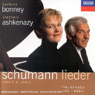 | Liste des pistes | 1.1 . widmung (schumann robert) - Clara Schumann,Robert Schumann 1.2 . der nussbaum (schumann robert) - Clara Schumann,Robert Schumann 1.3 . die lotosblume (schumann robert) - Clara Schumann,Robert Schumann 1.4 . lied der suleika (schumann robert) - Clara Schumann,Robert Schumann 1.5 . er ist gekommen in sturm und regen (schumann clara) - Clara Schumann,Robert Schumann 1.6 . liebst du um schonheit (schumann clara) - Clara Schumann,Robert Schumann 1.7 . das veilchen (schumann clara) - Clara Schumann,Robert Schumann 1.8 . lorelei (schumann clara) - Clara Schumann,Robert Schumann 1.9 . mein stern (schumann clara) - Clara Schumann,Robert Schumann 1.10 . frauenliebe und leben, op 42 : seit ich ihn gesehen (schumann robert) - Clara Schumann,Robert Schumann 1.11 . frauenliebe und leben, op 42 : er der herrlichste von allen (schumann robert) - Clara Schumann,Robert Schumann 1.12 . frauenliebe und leben, op 42 : ich kann's nicht fassen... (schumann robert) - Clara Schumann,Robert Schumann 1.13 . frauenliebe und leben, op 42 : du ring an meinem finger (schumann robert) - Clara Schumann,Robert Schumann 1.14 . frauenliebe und leben, op 42 : helft mir, ihr schwestern (schumann robert) - Clara Schumann,Robert Schumann 1.15 . frauenliebe und leben, op 42 : susser freund, du blickest (schumann robert) - Clara Schumann,Robert Schumann 1.16 . frauenliebe und leben, op 42 : an meinem herzen... (schumann robert) - Clara Schumann,Robert Schumann 1.17 . frauenliebe und leben, op 42 : nun hast du mir den ersten... (schumann robert) - Clara Schumann,Robert Schumann 1.18 . 6 lieder, op 13 : ich stand in dunklen traumen (schumann clara) - Clara Schumann,Robert Schumann 1.19 . 6 lieder, op 13 : sie liebsten sich beide (schumann clara) - Clara Schumann,Robert Schumann 1.20 . 6 lieder, op 13 : liebeszauber (schumann clara) - Clara Schumann,Robert Schumann 1.21 . 6 lieder, op 13 : der mond kommt still gegangen (schumann clara) - Clara Schumann,Robert Schumann 1.22 . 6 lieder, op 13 : ich hab' in deinem auge (schumann clara) - Clara Schumann,Robert Schumann 1.23 . 6 lieder, op 13 : die still lotosblume (schumann clara) - Clara Schumann,Robert Schumann 1.24 . 2 lieder aus liederkreis, op 39 : waldesgesprach (schumann robert) - Clara Schumann,Robert Schumann 1.25 . 2 lieder aus liederkreis, op 39 : mondnacht (schumann robert) - Clara Schumann,Robert Schumann 1.26 . er ist's, op 79 n 24 (schumann robert) - Clara Schumann,Robert Schumann 1.27 . sehnsucht, op 51 n 1 (schumann robert) - Clara Schumann,Robert Schumann 1.28 . mein schoner stern!, op 101 n 4 (schumann robert) - Clara Schumann,Robert Schumann 1.29 . mignon, op 79 n 29 (schumann robert) - Clara Schumann,Robert Schumann |