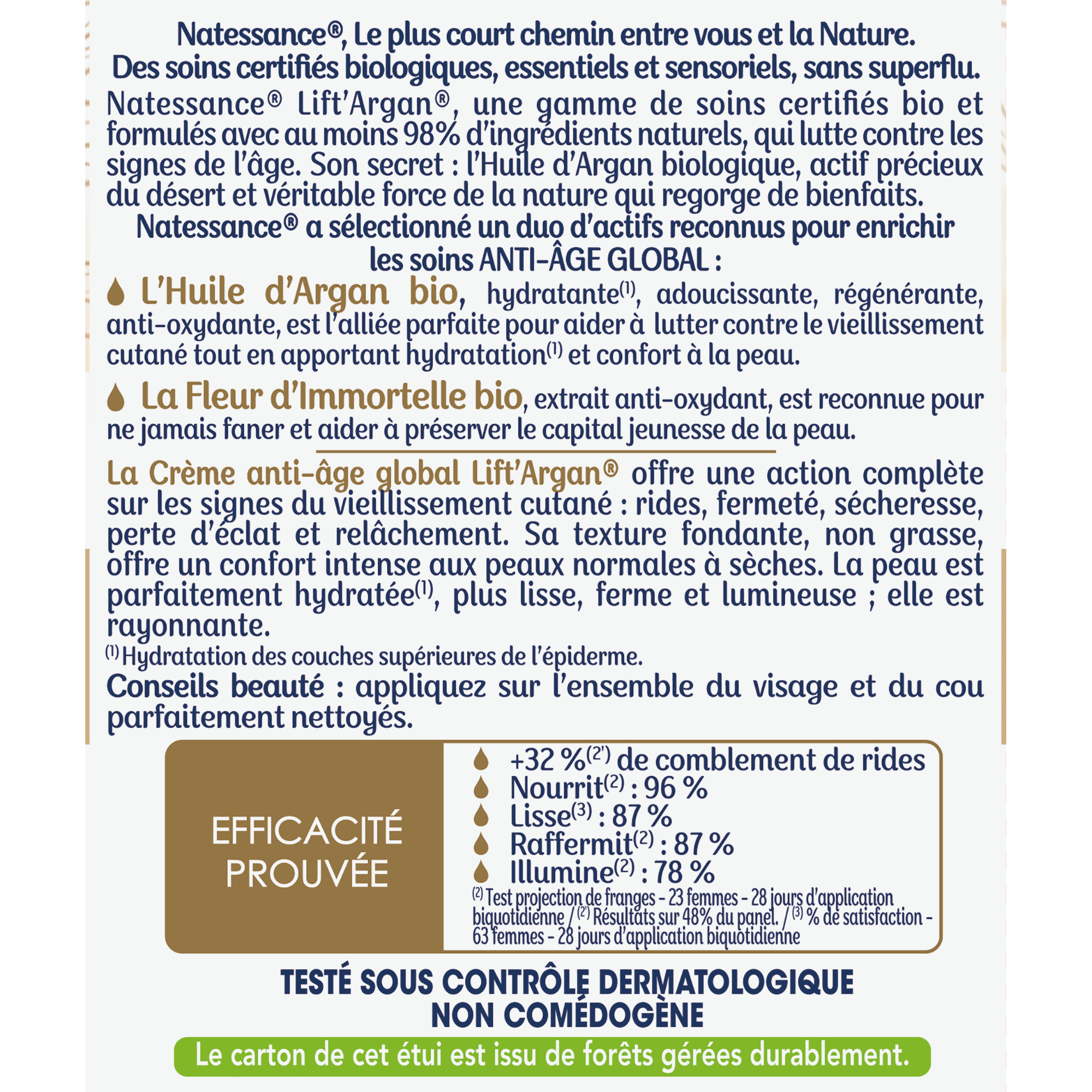 | Libellé | Lift'Argan crème anti-âge global bio 50ml |
