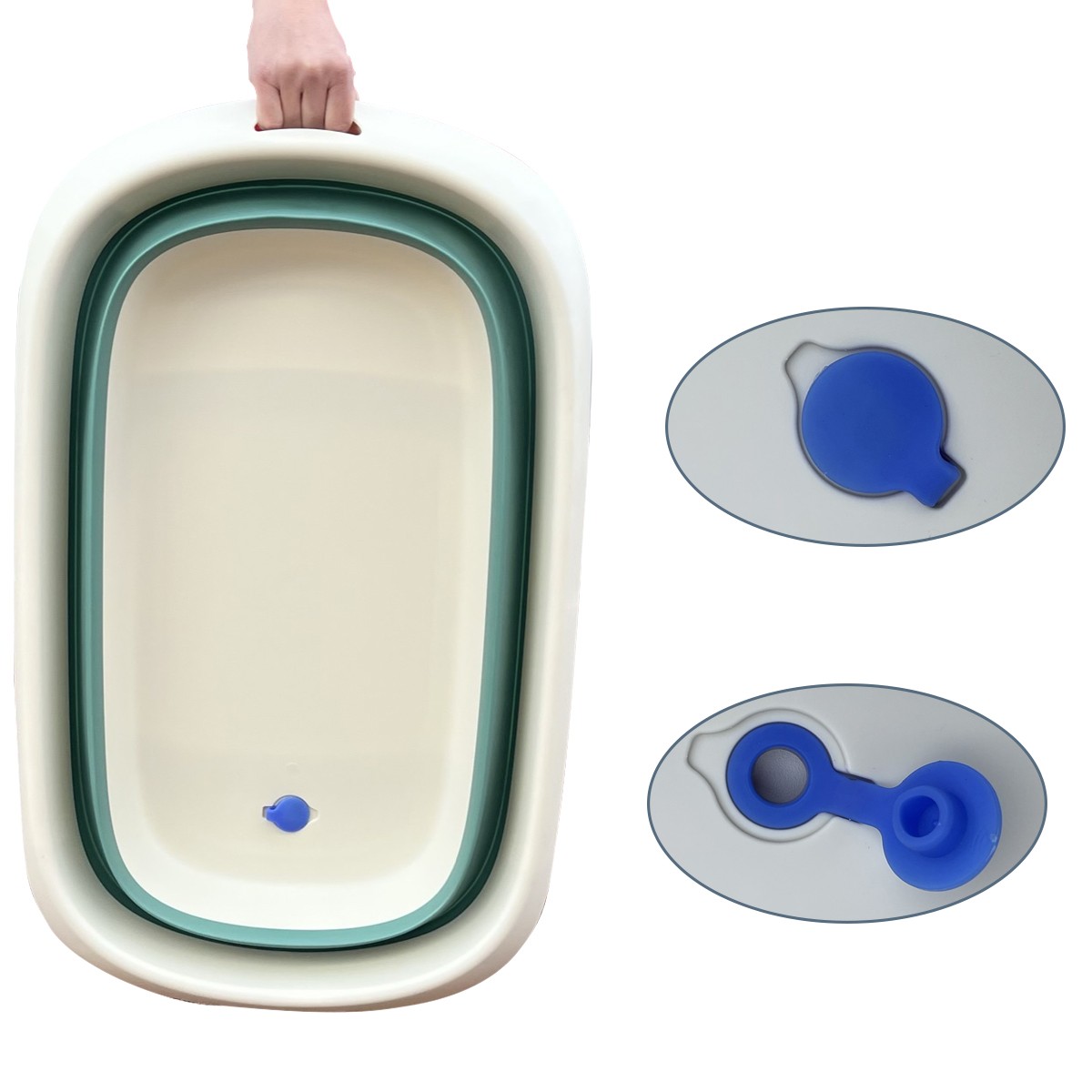 Baignoire spacieuse, pliable ultra-compacte, facile à ranger et à transporter grâce à sa poignée. Les parois souples de la baignoire se plient sur elles-même pour un gain de place maximum et les pieds se rabattent en appuyant les boutons pression situés aux extrémités.