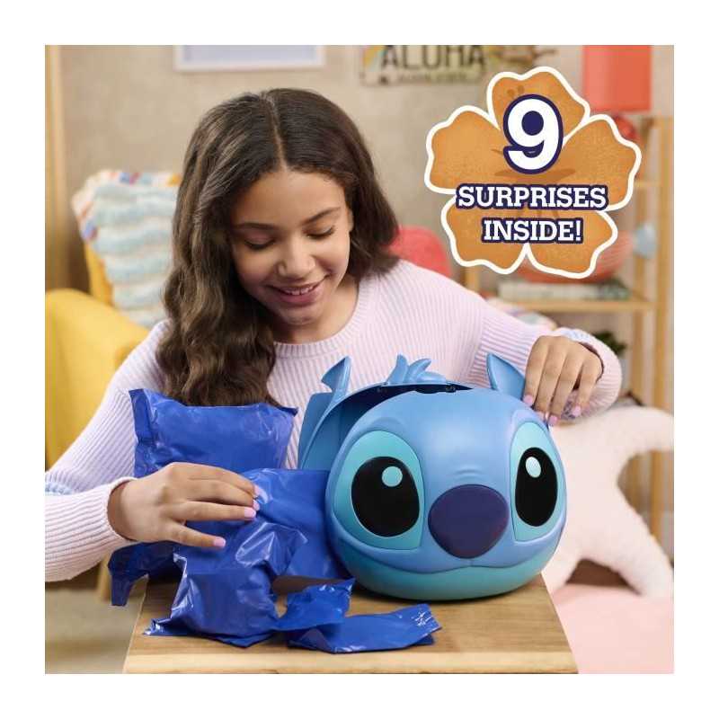 Cet ensemble sympa est présenté dans une capsule réutilisable d'environ 23 cm en forme de tête de Stitch et contient :