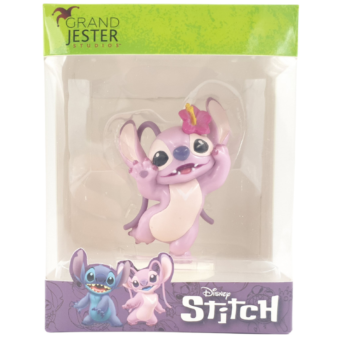 Figurine a l'effigie d'Angel avec une fleur de la série Lilo et Stitch. Cette figurine est sous licence Disney. Elle est scultée en résine et peinte a la main.