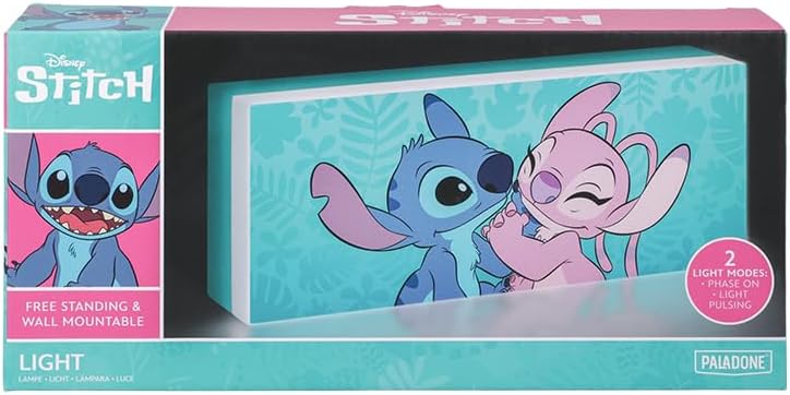 Illuminez votre intérieur avec cette lampe décorative à l'effigie de Stitch et Angel, les deux adorables extraterrestres du film Disney Lilo & Stitch. Cette lampe mesure environ 30cm de hauteur et diffuse une lumière douce et chaleureuse. Elle est fabriquée en PVC de haute qualité et fonctionne avec des piles (non incluses). C'est un produit officiel Disney, sous licence Paladone. Que vous soyez fan de Lilo & Stitch ou que vous cherchiez un cadeau original pour un proche, cette lampe décorative Stitch et Angel est faite pour vous !