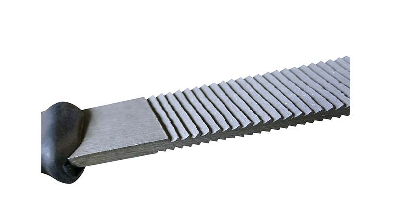 Lime mixte, avec un côté écouane (taille perpendiculaire) et un côté bâtard (taille croisée) pour le nettoyage des pannes de fer à souder.