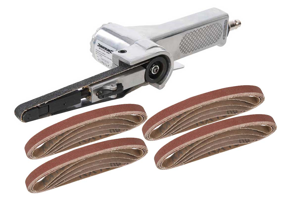 Ponceuse pneumatique à bande étroite + 20 bandes abrasives de 10 x 330
