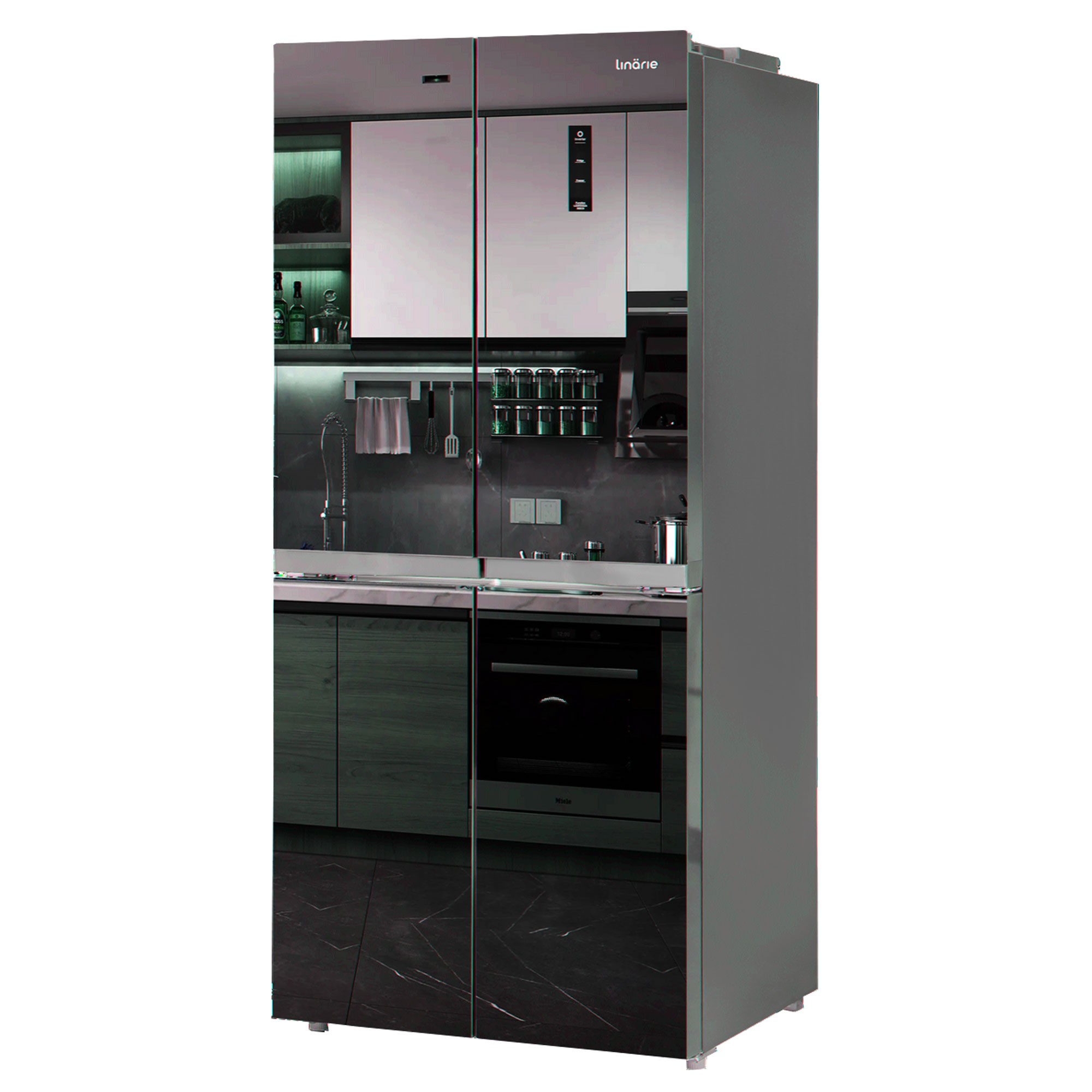 Linarie Réfrigérateur Congélateur 4 portes LSCD430MIR 418 Litres Meribel verre Miroir fumé