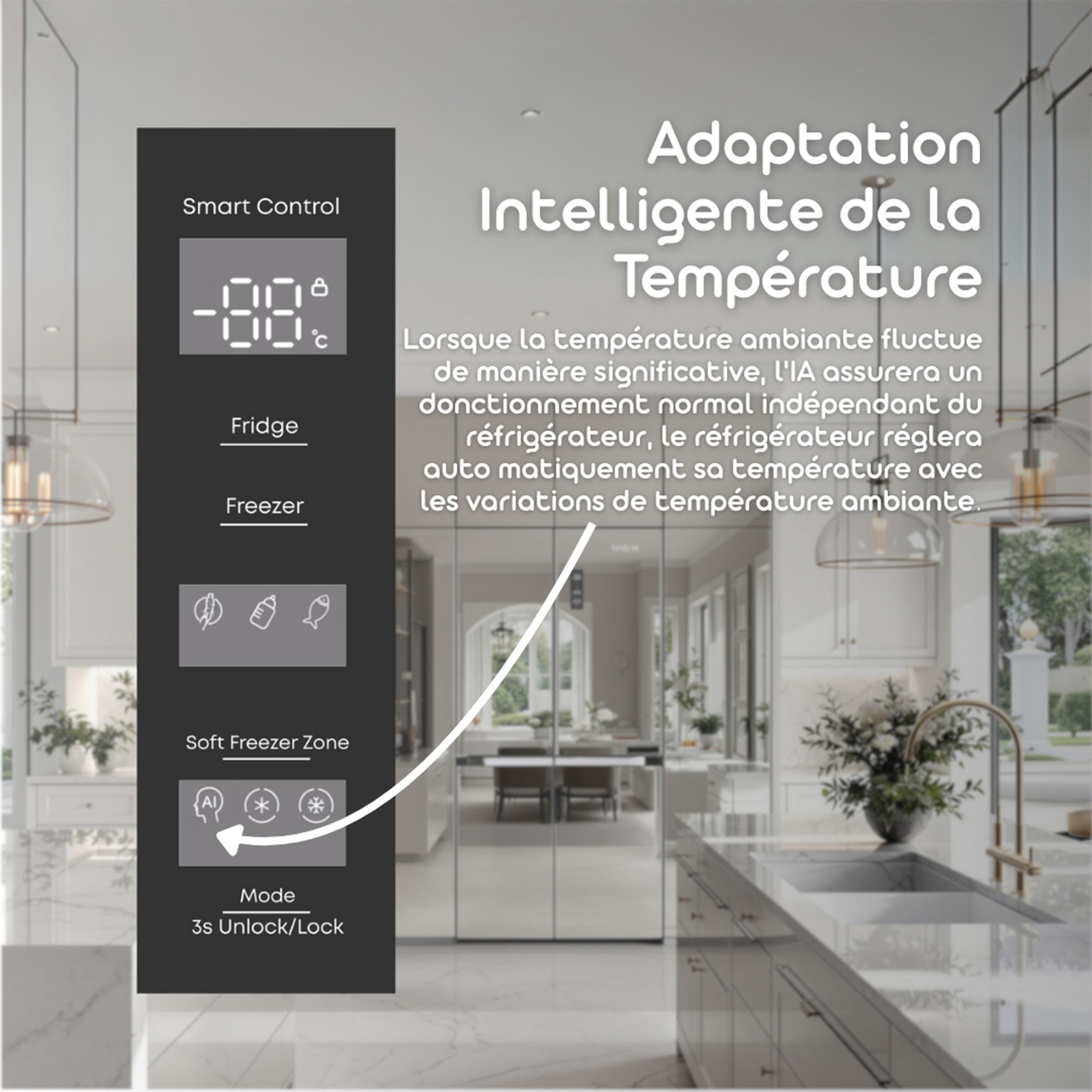 Lorsque la température ambiante fluctue de manière significative, l'IA réglera automatiquement la temperature avec les variations de temperatures ambiante.