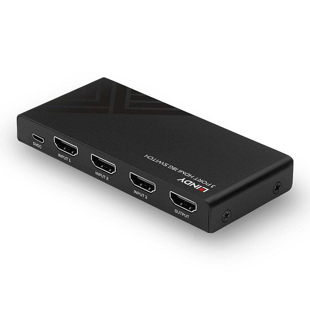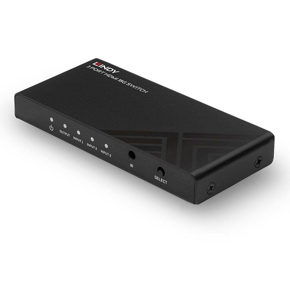 Le switch HDMI 3 ports 18G de Lindy est une solution compacte de haute qualité pour facilement commuter entre 3 sources HDMI vers un écran.