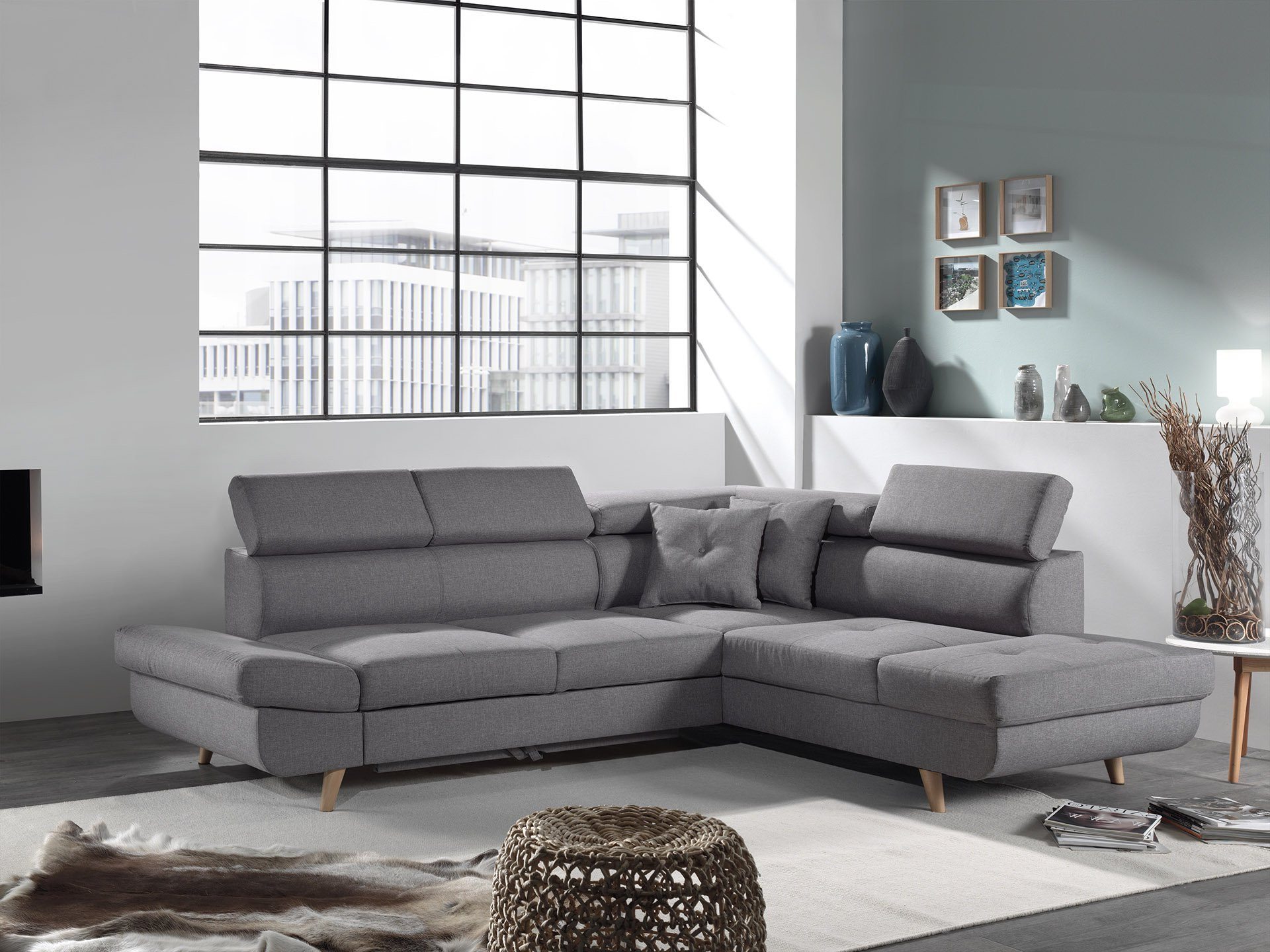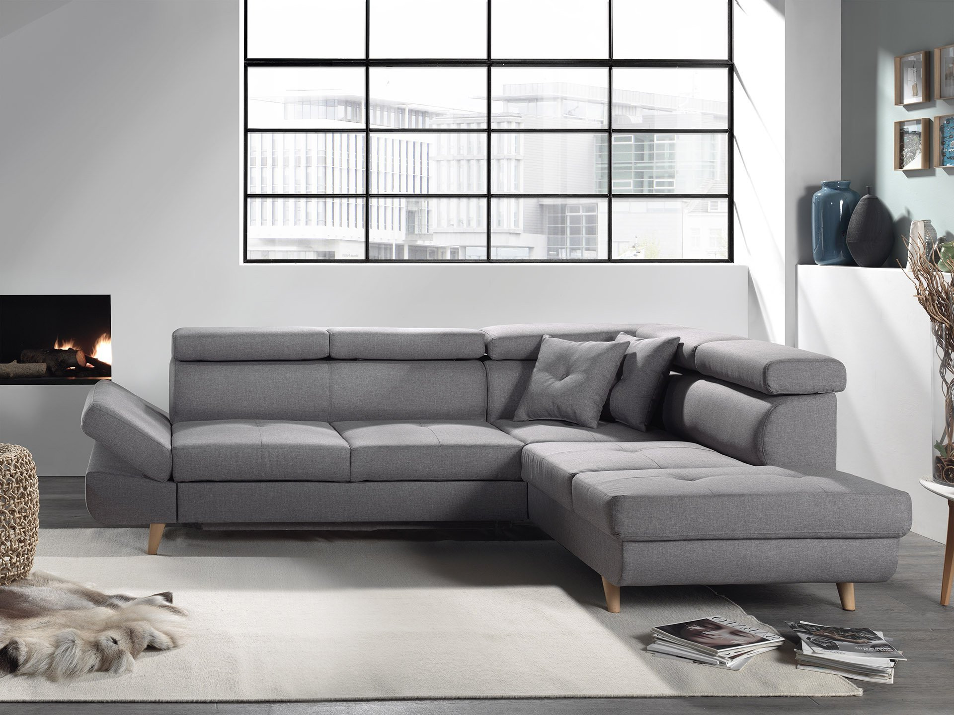 LINEA : canapé d'angle droit convertible scandinave avec appuis-têtes réglables et accoudoir ajustable