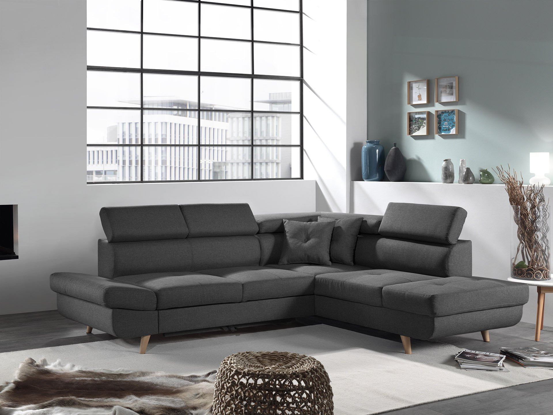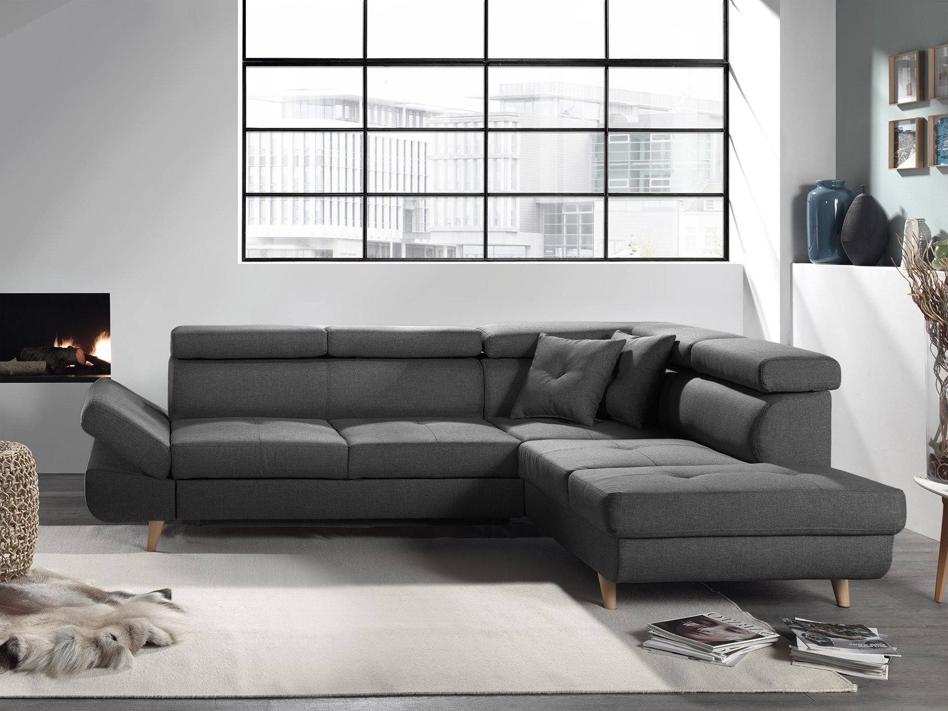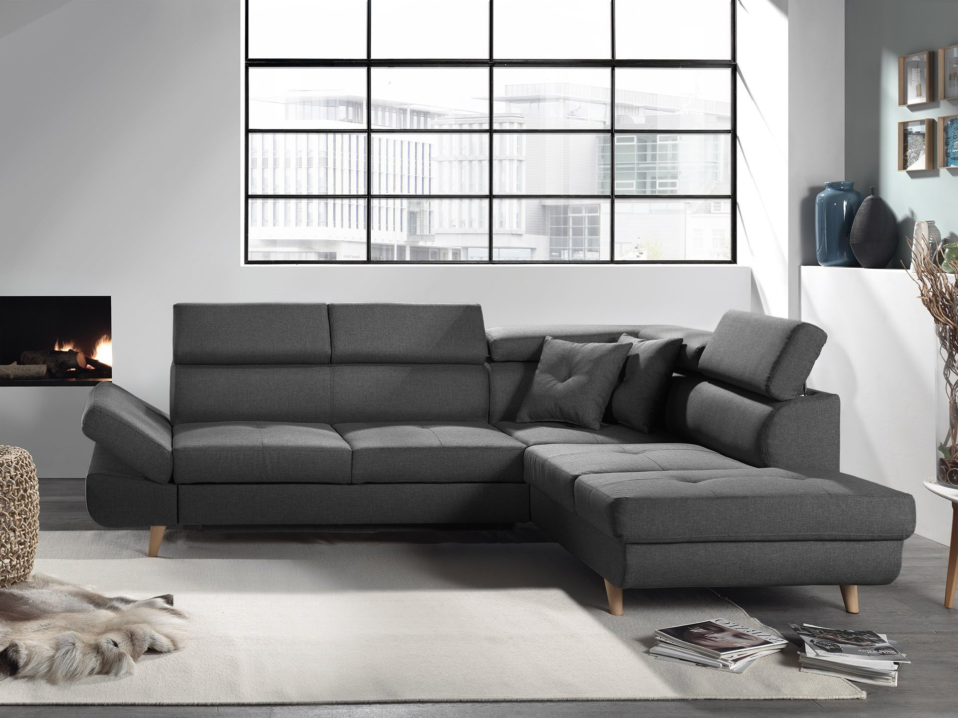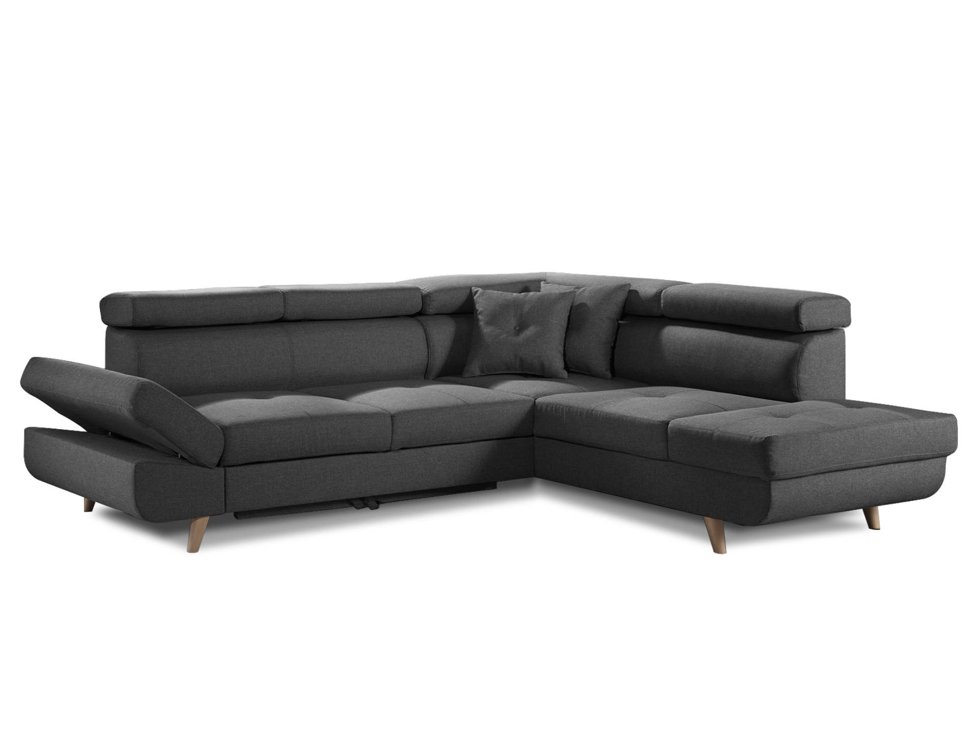 LINEA : canapé d'angle droit convertible scandinave avec appuis-têtes réglables et accoudoir ajustable