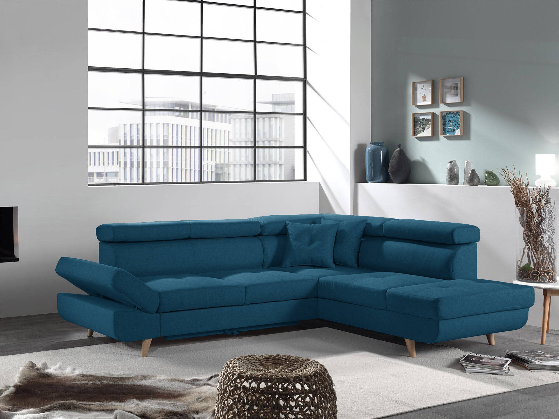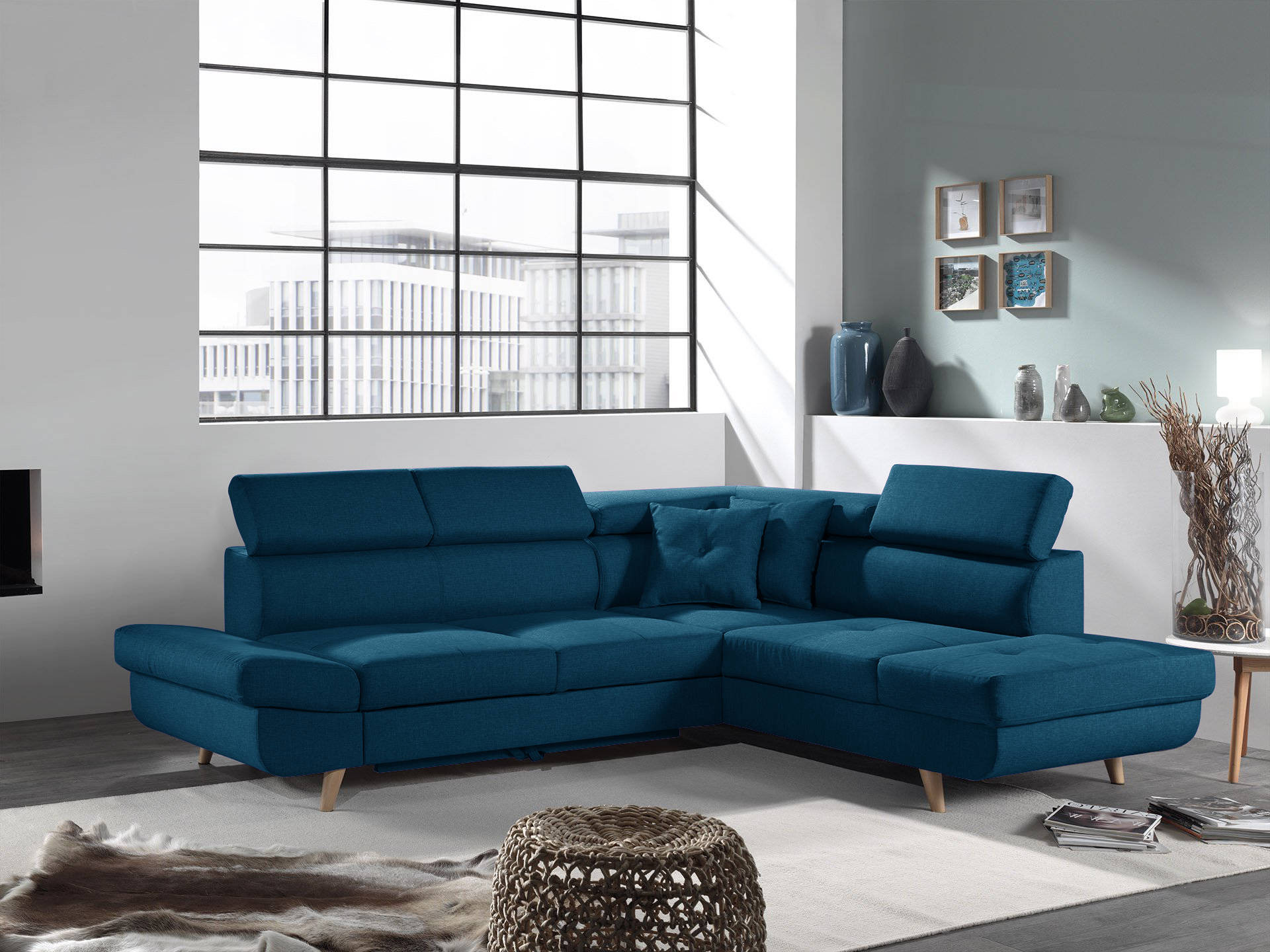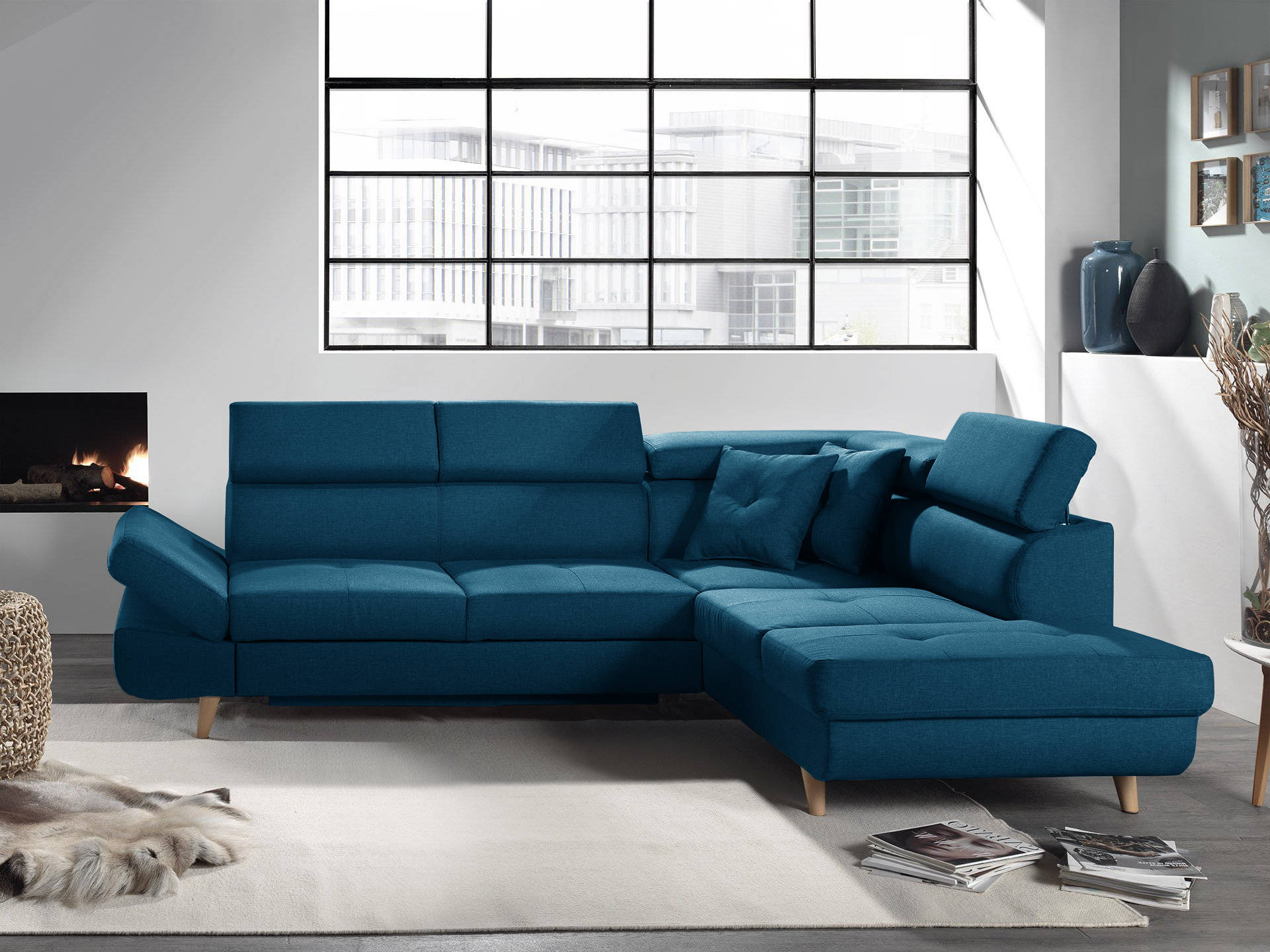 LINEA : canapé d'angle droit convertible scandinave avec appuis-têtes réglables et accoudoir ajustable