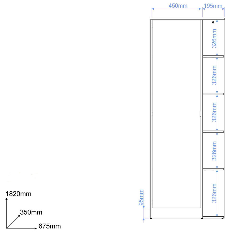 Largeur 67.5 cm Hauteur 182 cm Profondeur 35 cm