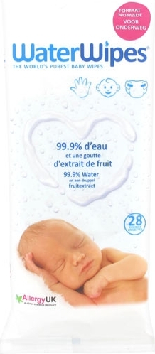 Waterwipes 28 Lingettes sont des lingettes adaptées aux nouveau-nés dont la peau est cinq fois plus fine que celle des adultes. Ces lingettes formulées à 99,9% d'eau et 0,1% d'extrait de pamplemousse nettoient naturellement la peau de bébé. Elles préviennent aussi l'apparition de l'érythème fessier et les rougeurs du siège.