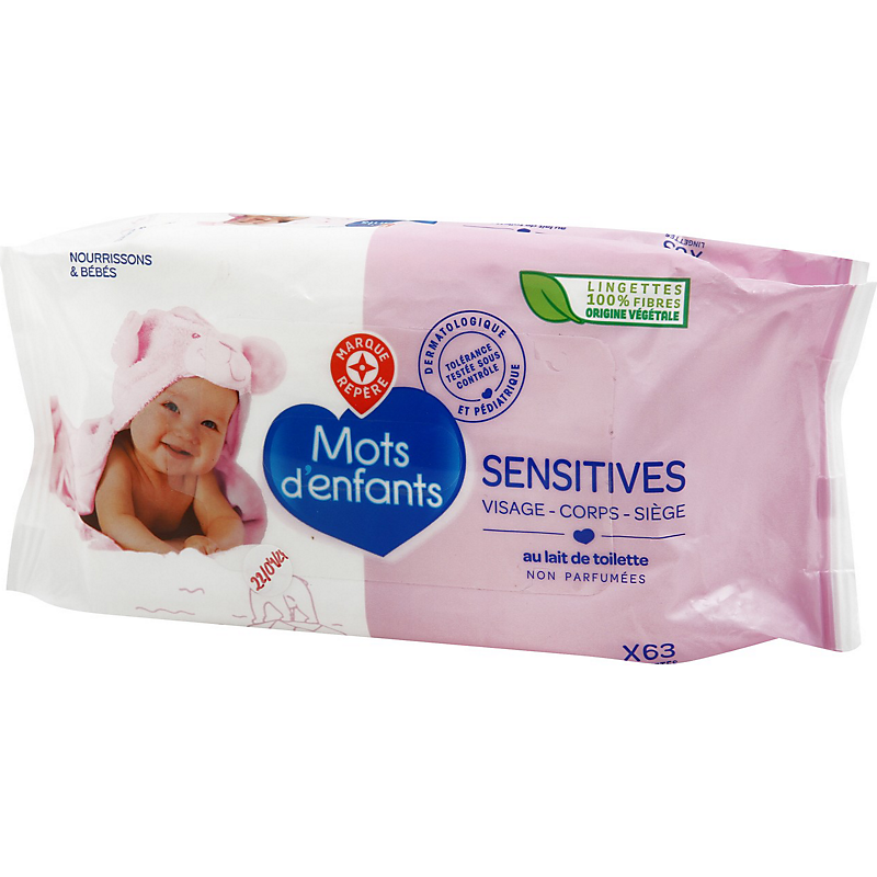 Lingettes bébé sensitives x63 - MOTS D'ENFANTS