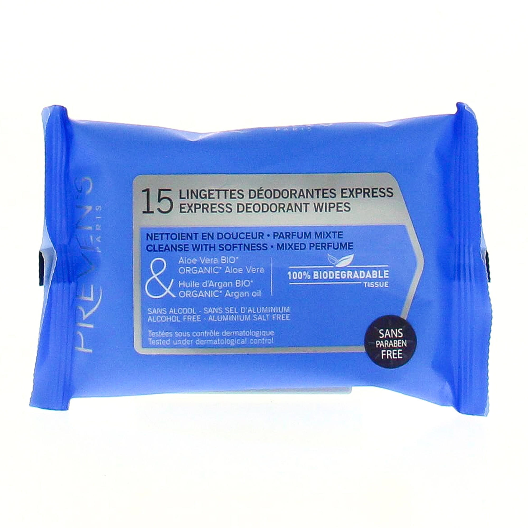 Les lingettes déodorantes vous permettent de rester frais à tout moment de la journée. En vacances, au bureau, ou en ville, les lingettes déodorantes Preven’s luttent efficacement contre les manifestations désagréables de la transpiration. La formation des odeurs corporelles est le résultat de la dégradation naturelle de la sueur par les bactéries présentes sur notre corps. Les lingettes Preven’s Déodorantes nettoient et assainissent la peau. La solution est sans alcool, sans sels d’aluminium et testée sous contrôle dermatologique, pour respecter en douceur l’équilibre naturel de votre peau