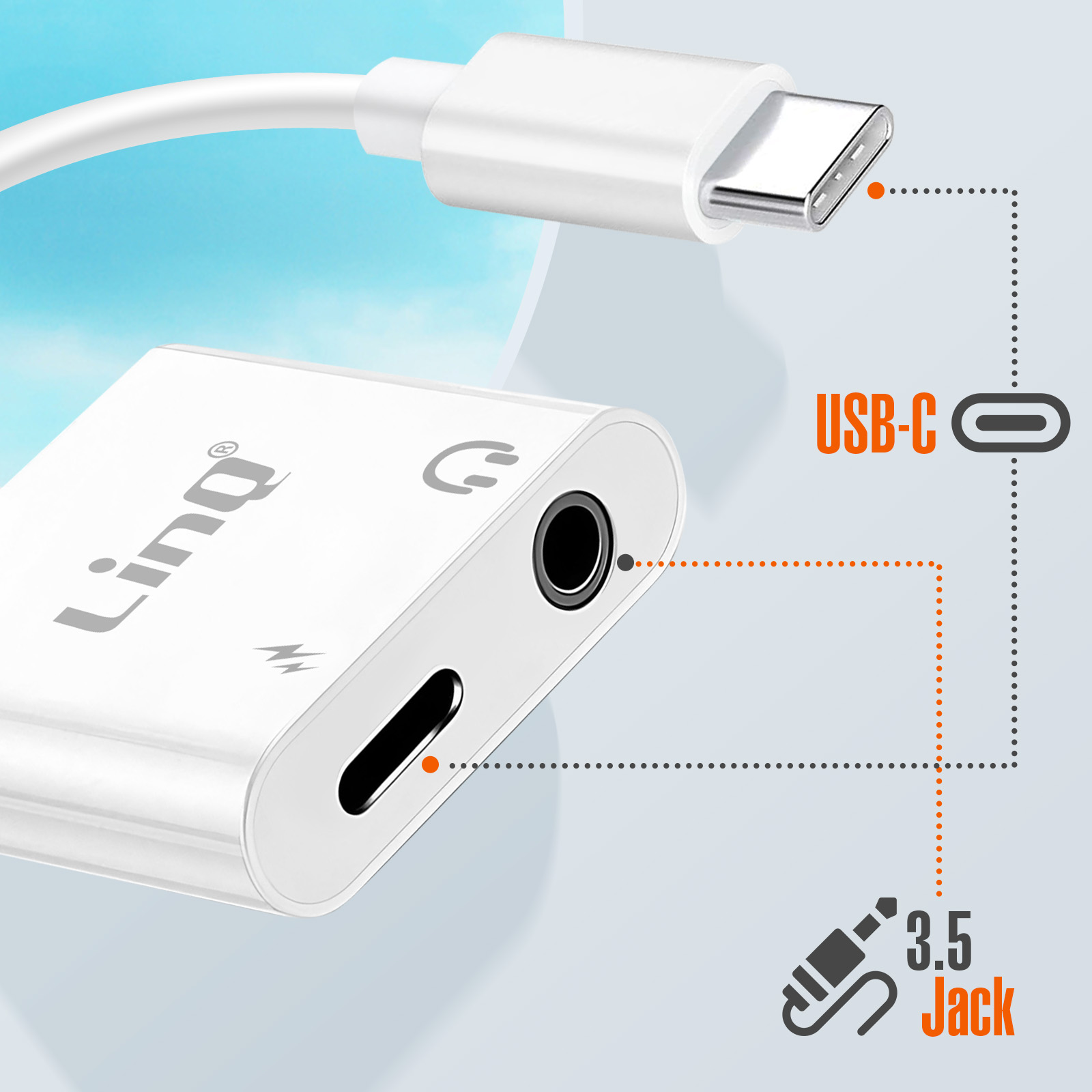 LinQ Adaptateur de charge USB C Power Delivery et Audio Jack 3.5mm Blanc