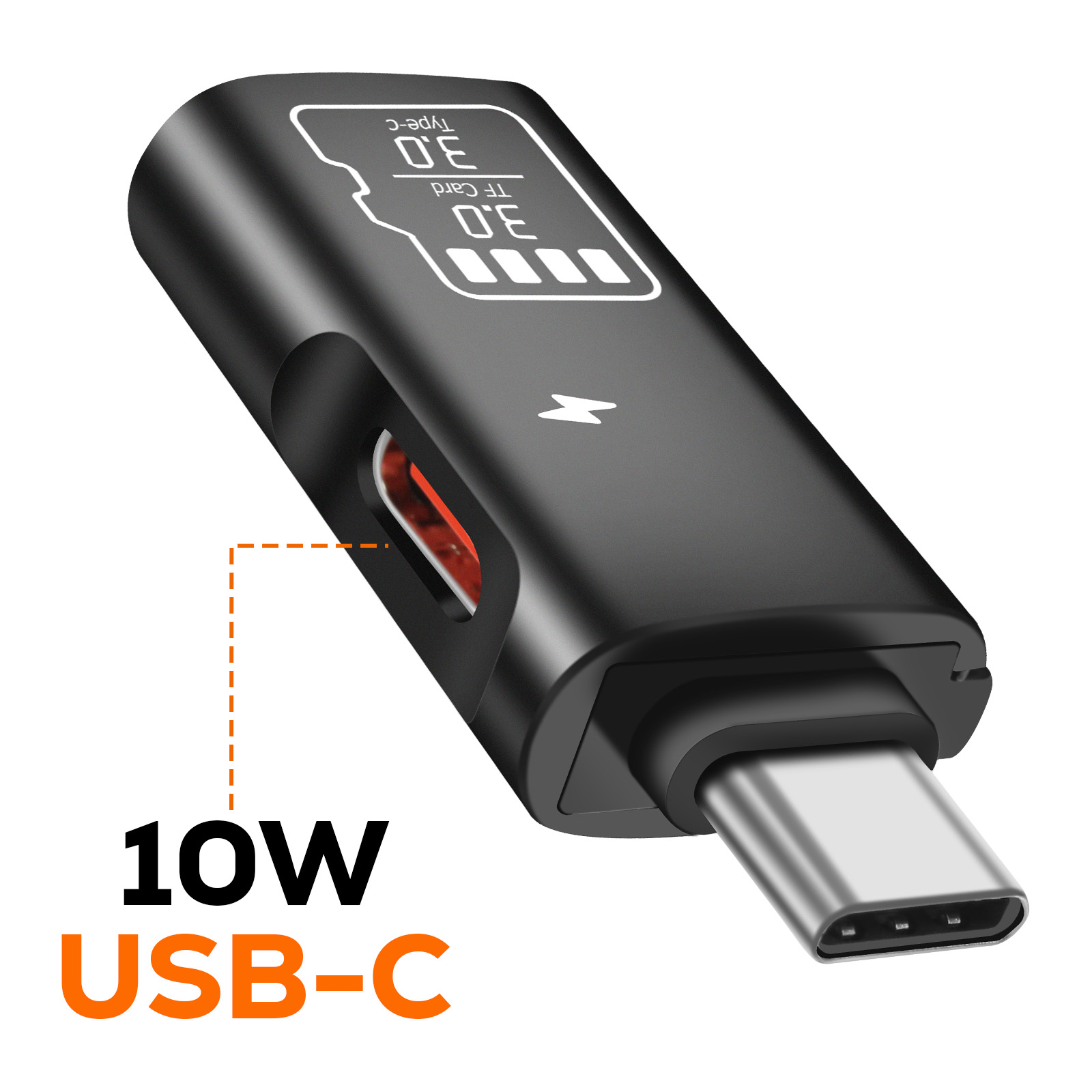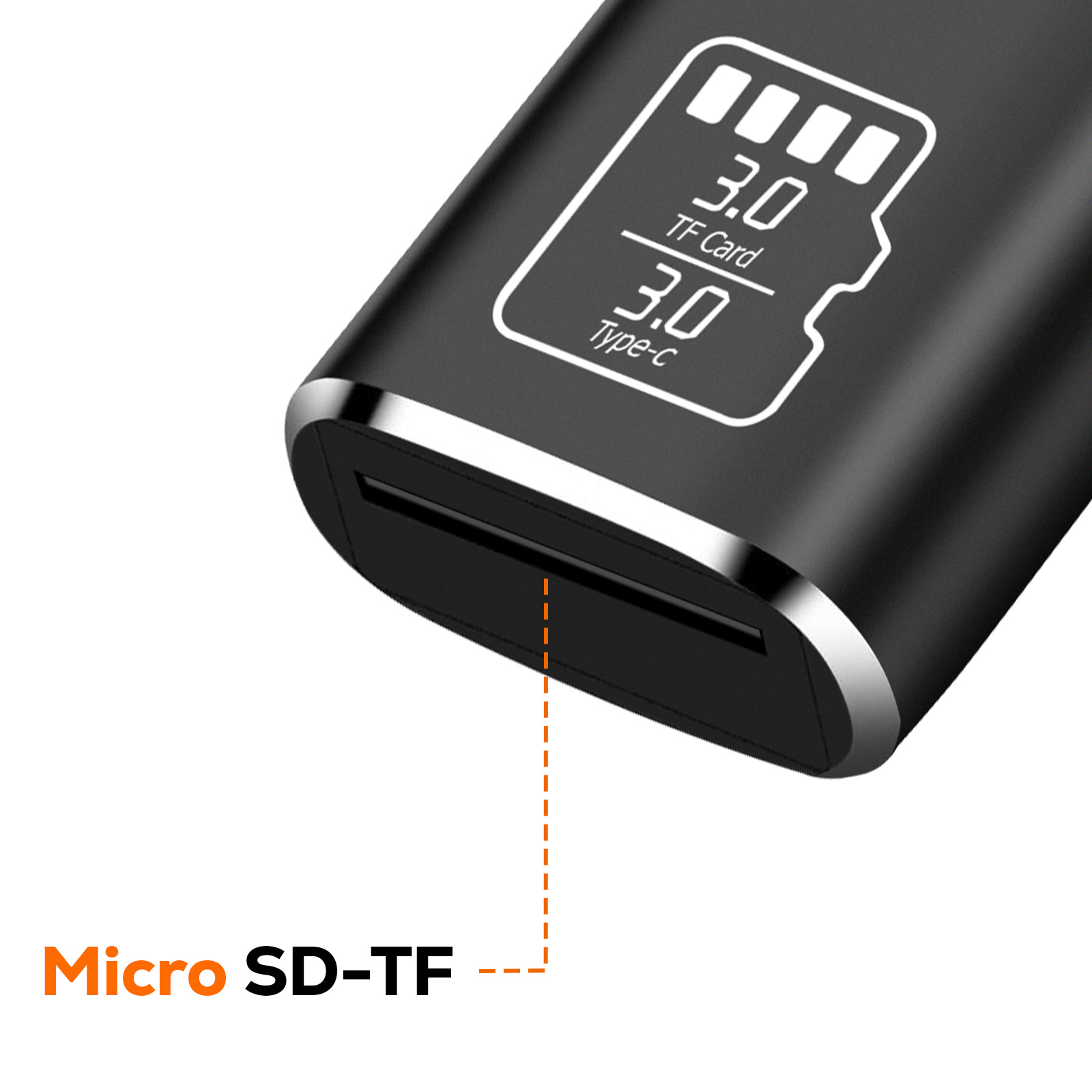LinQ Lecteur de Carte Micro-SD vers USB-C Transfert 5 Gbps avec Recharge USB-C 10W Noir