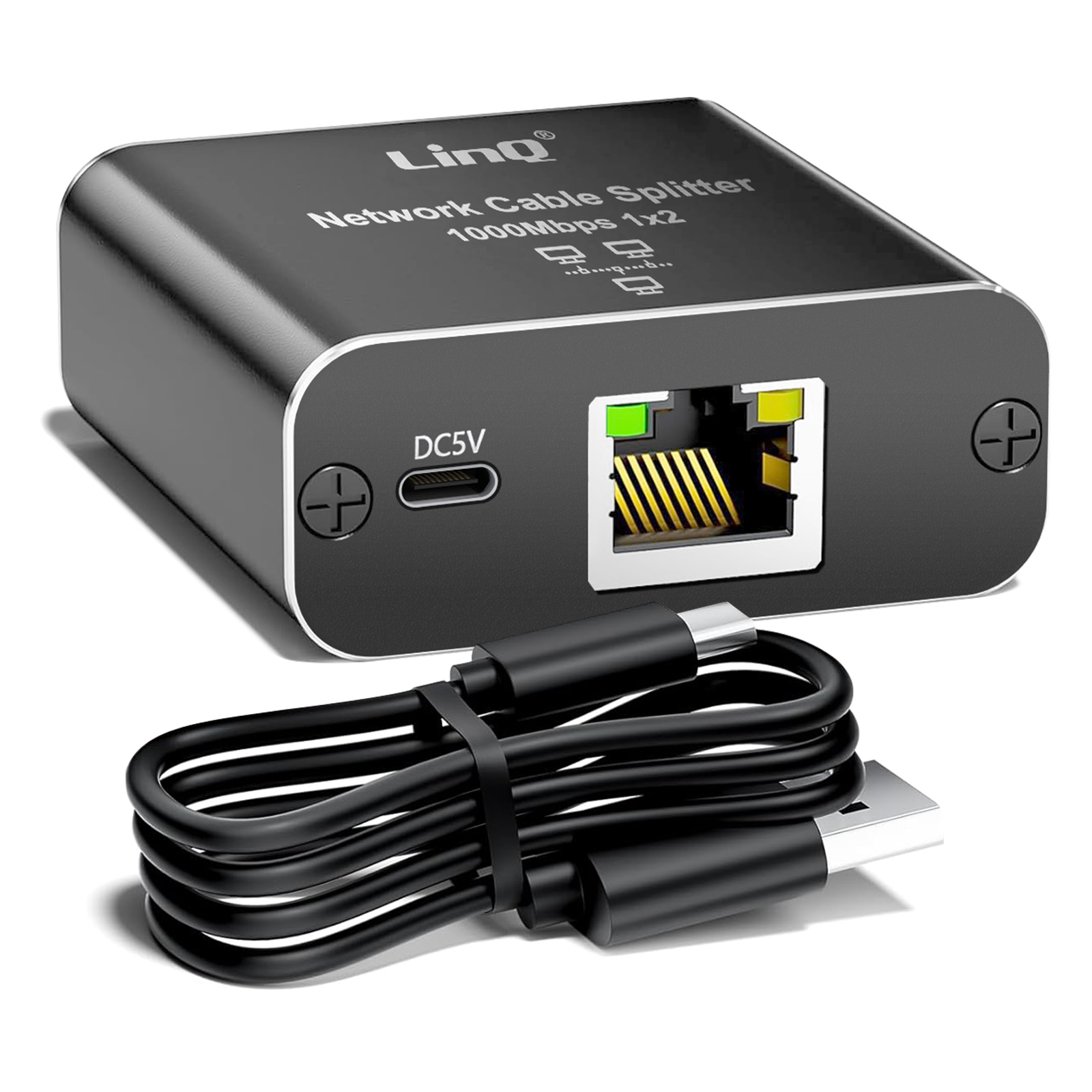 Multiprise Ethernet RJ45 de la marrque LinQ. Divise une seule connexion réseau en deux sans réduire la vitesse de transmission. Assure une vitesse Gigabit jusqu'à 1000 Mbps pour une performance optimale. Permet de connecter simultanément deux appareils avec un seul port RJ45. Fonctionne avec une alimentation 5V via port Type-C pour une utilisation stable. Conception compacte et pratique pour un rangement facile et discret.