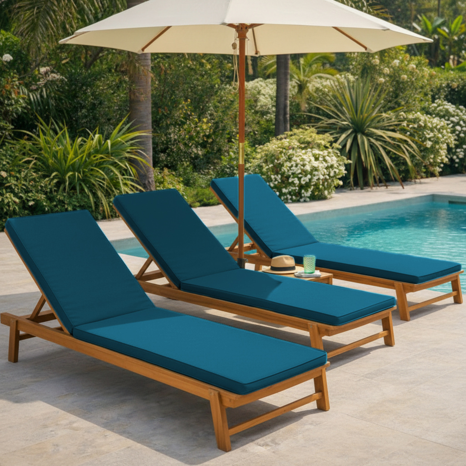 Linxor - Coussin déhoussable pour bain de soleil, transat - 183 x 60 cm - Bleu azur