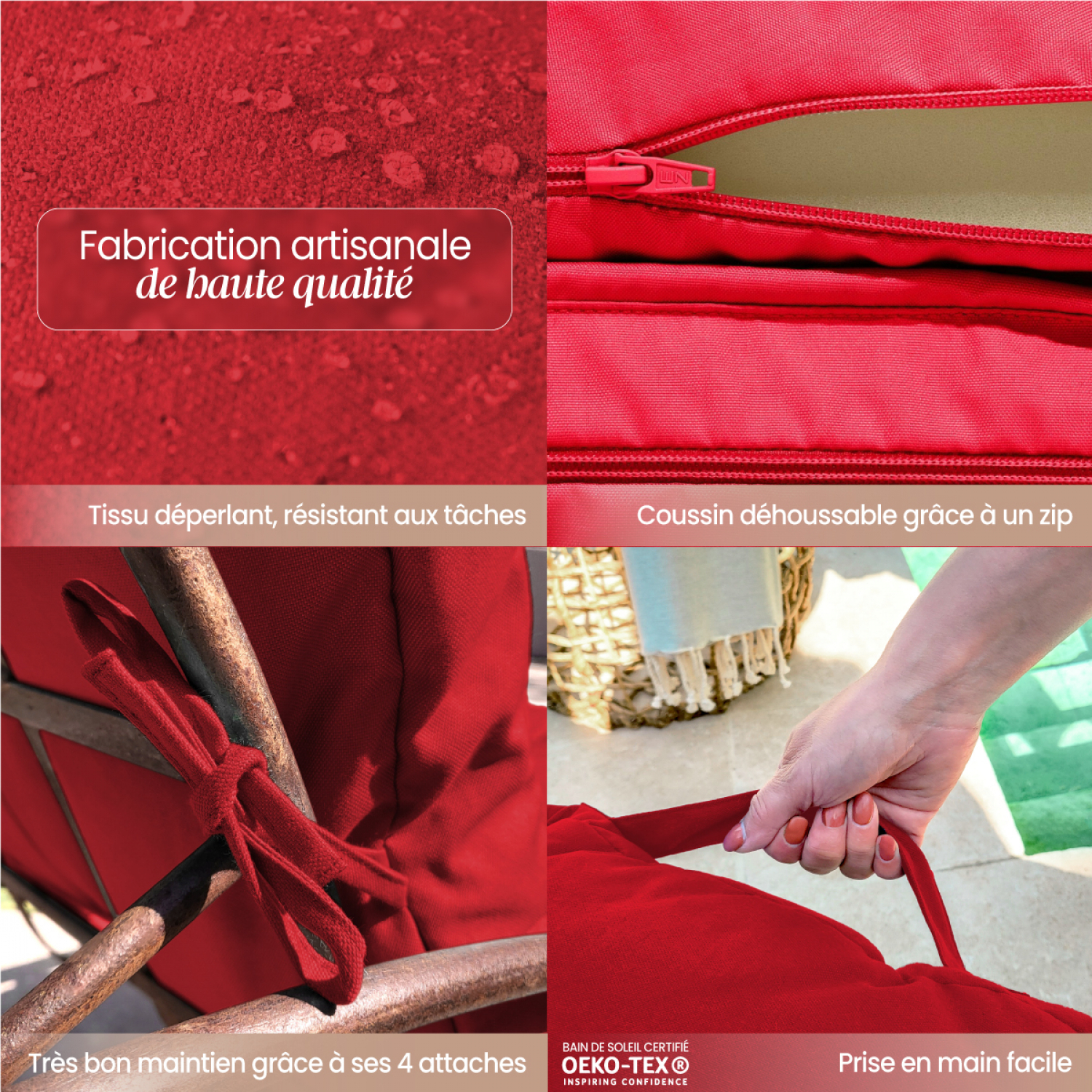 | Libellé | Linxor - Coussin déhoussable pour bain de soleil, transat - 183 x 60 cm - Rouge |