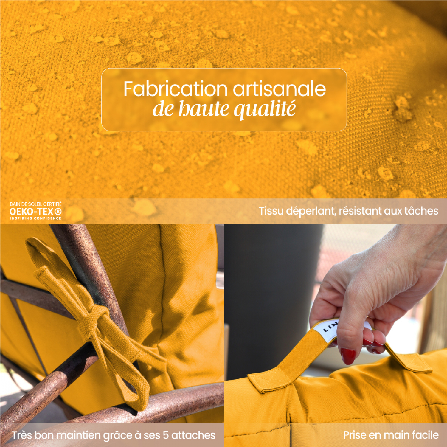 | Libellé | Linxor - Coussin matelassé pour bain de soleil, transat - 185 x 60 cm - Jaune |